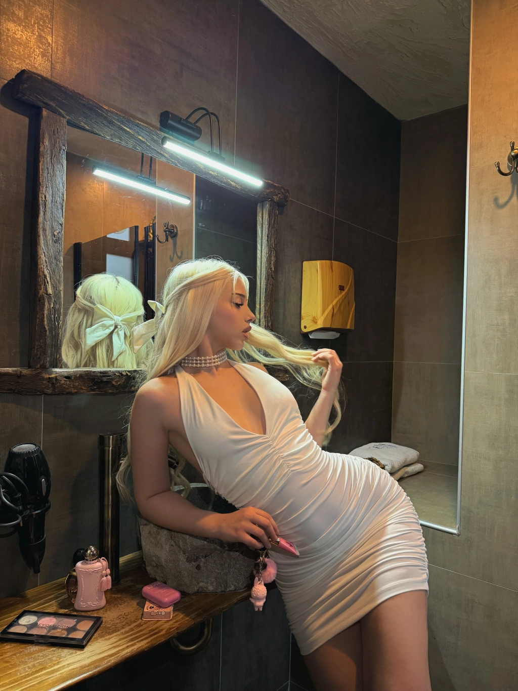 Beyaz Boyundan Bağlamalı Drapeli Mini Elbise