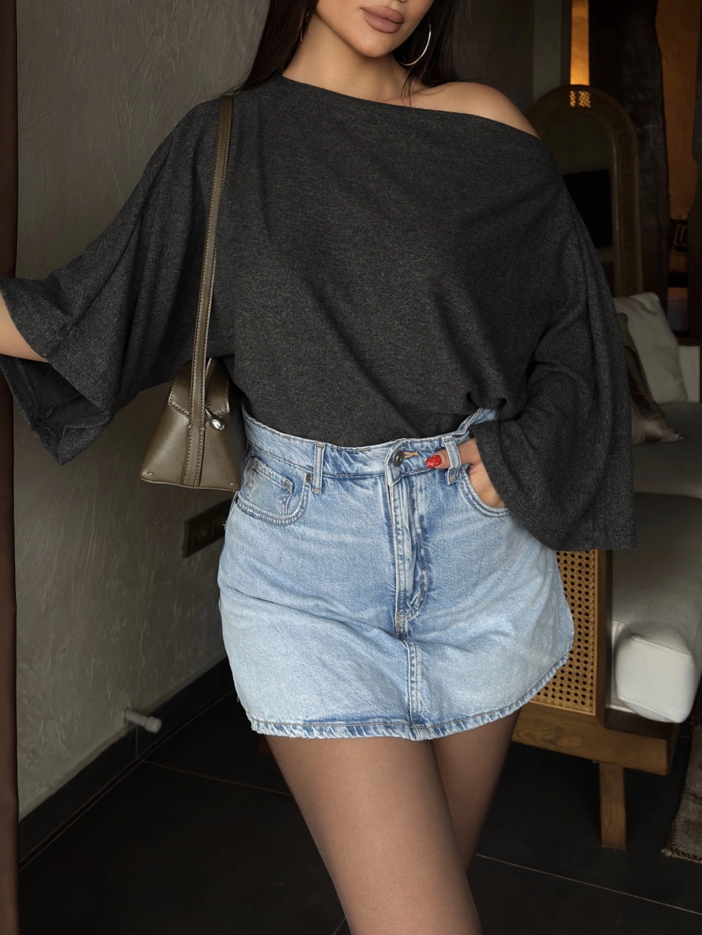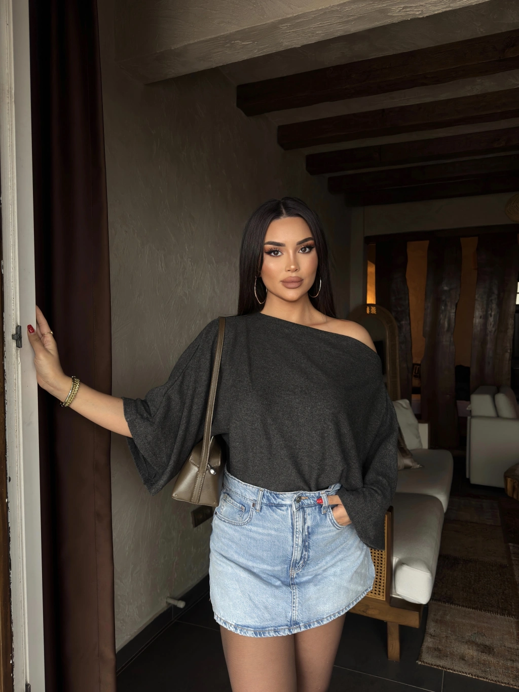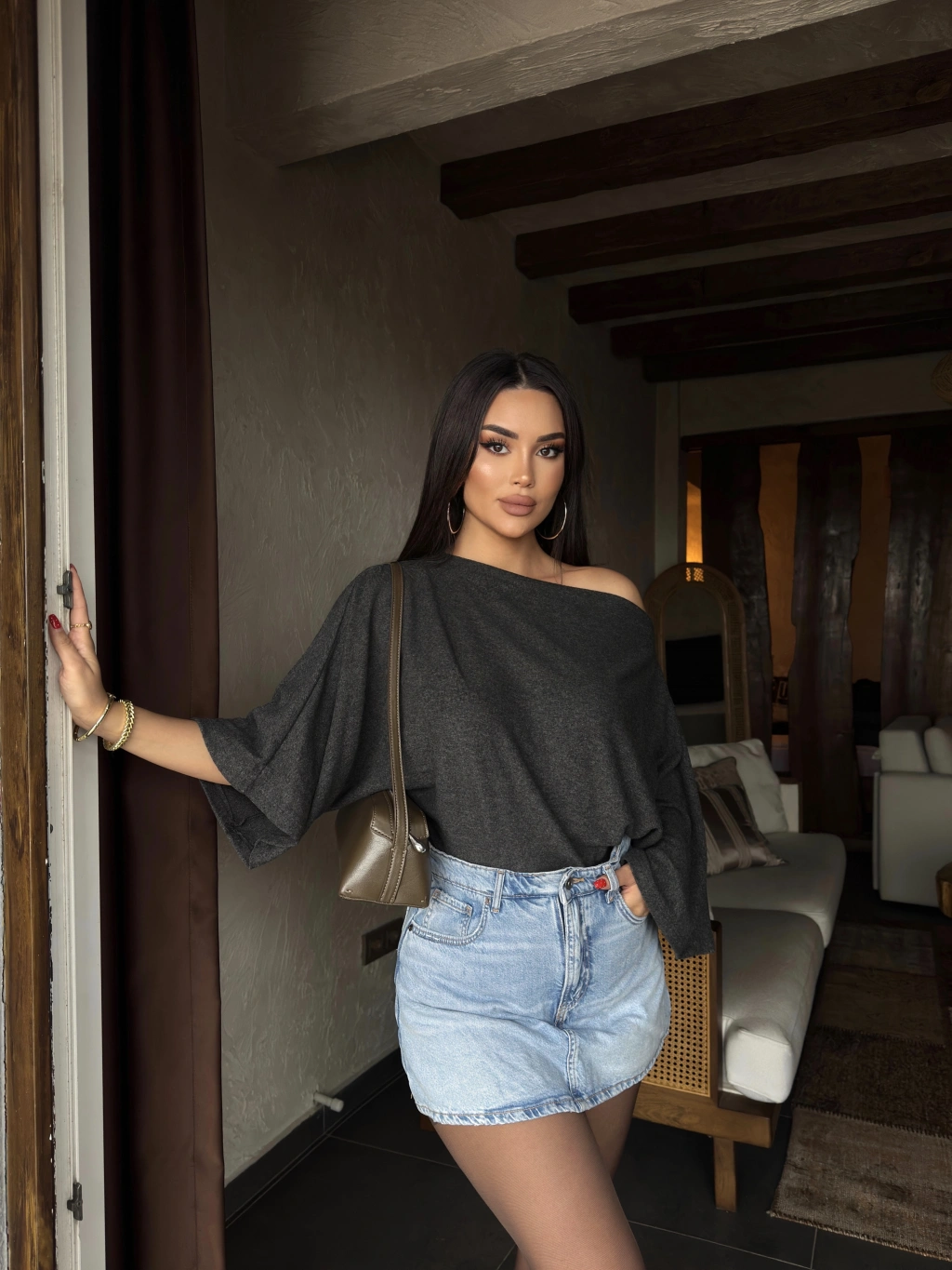 Antrasit Yarasa Kol Kayık Yaka Yumoş Bluz
