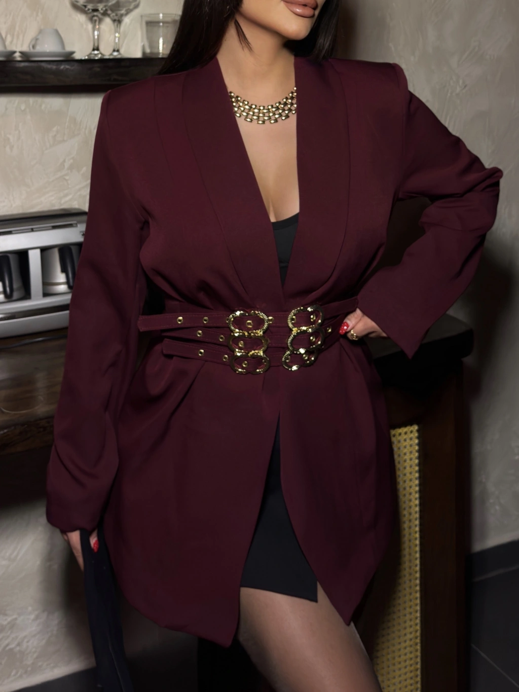 Bordo Aksesuarlı Blazer Ceket