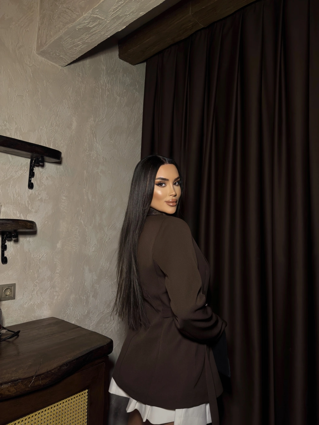 Kahverengi Çift Kemerli Tasarım Blazer Ceket