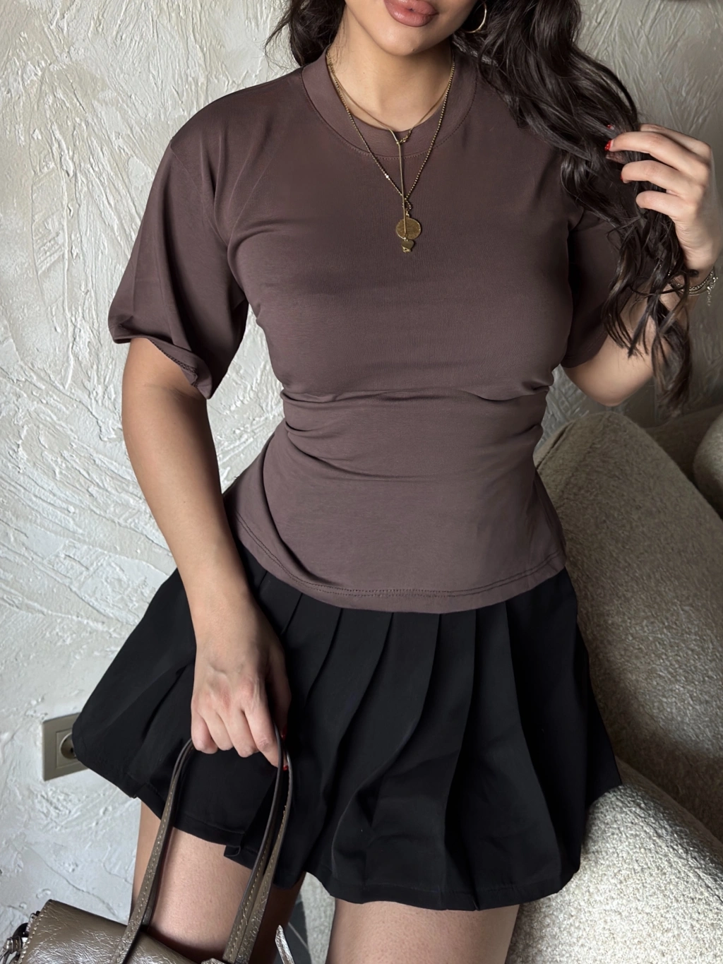Kahverengi Sırt Bağlamalı Bele Oturan Tshırt