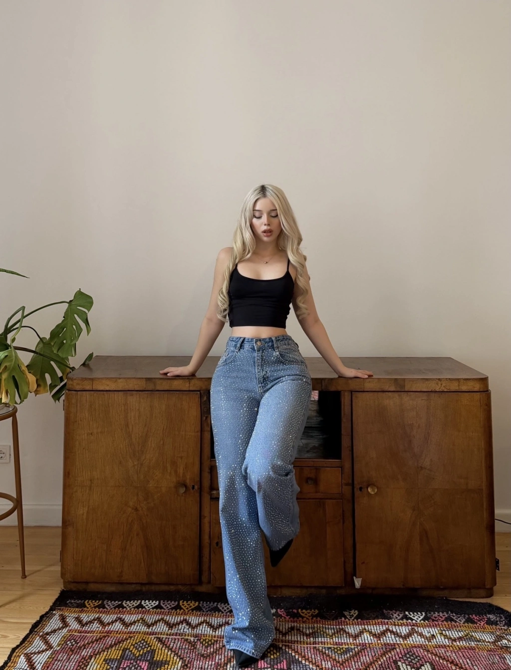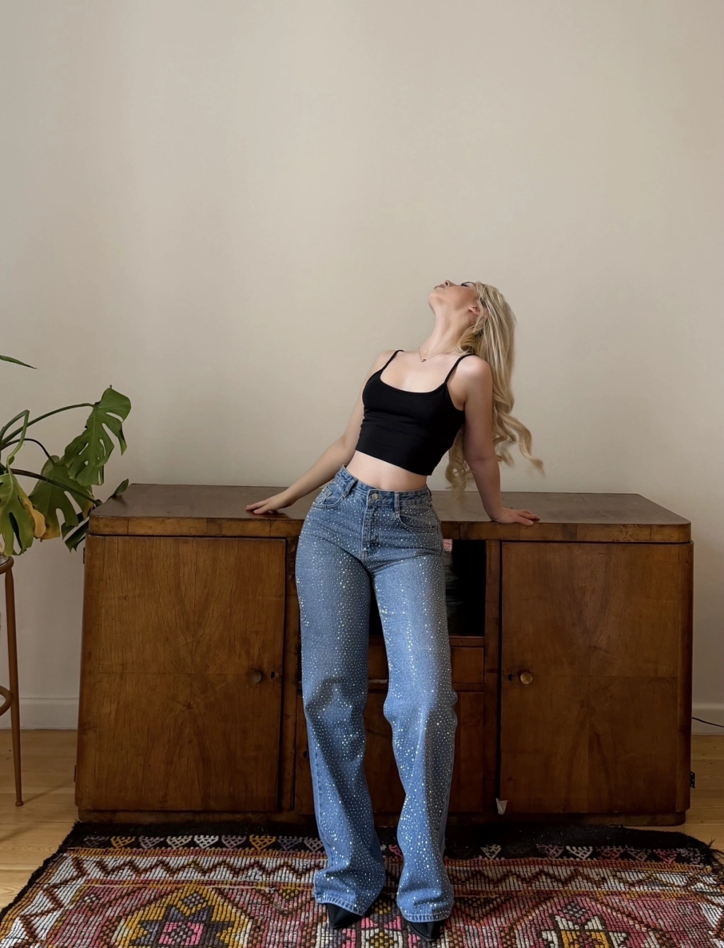 Mavi Wide Leg Önü Taşlı Pantolon