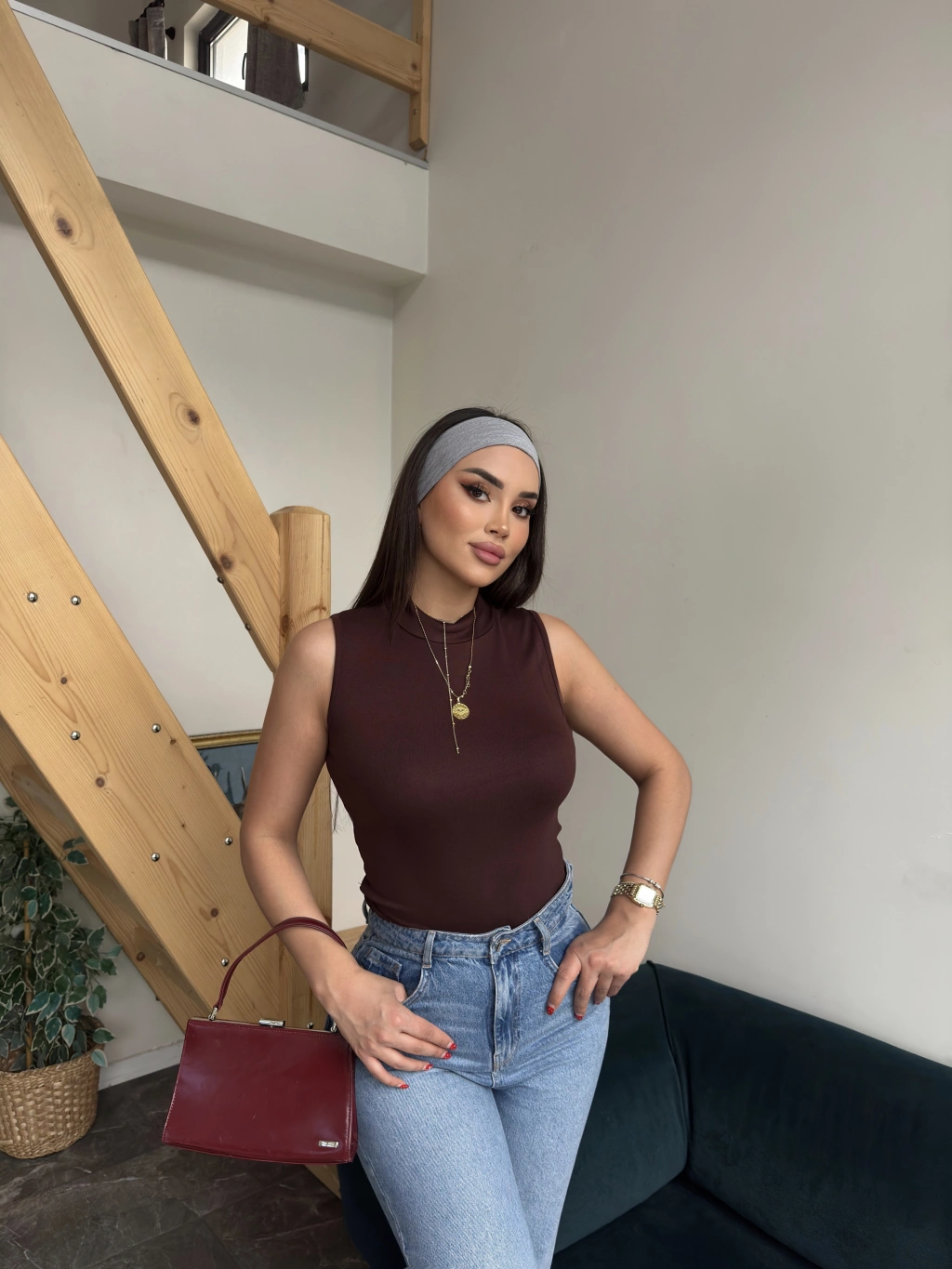 Kahverengi Yarım Balıkçı Kolsuz Crop
