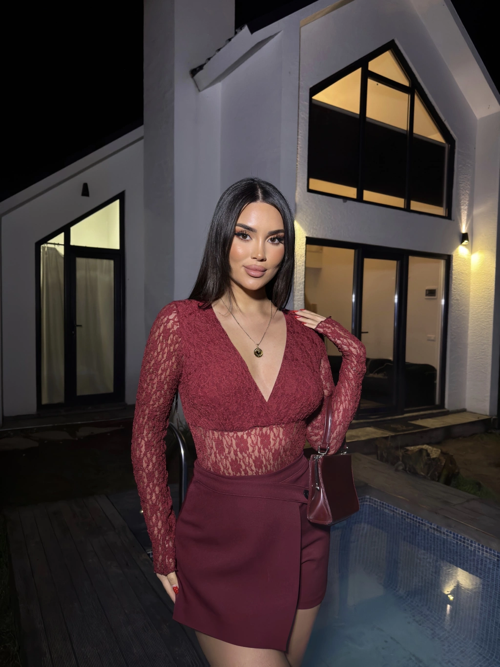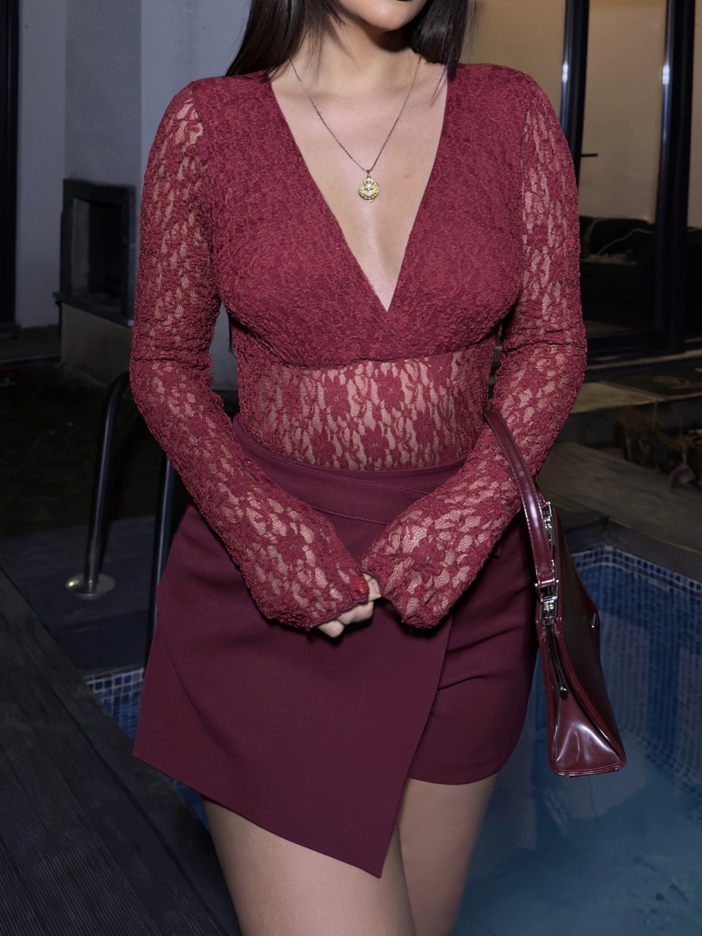 Bordo Dantel Bodysuit