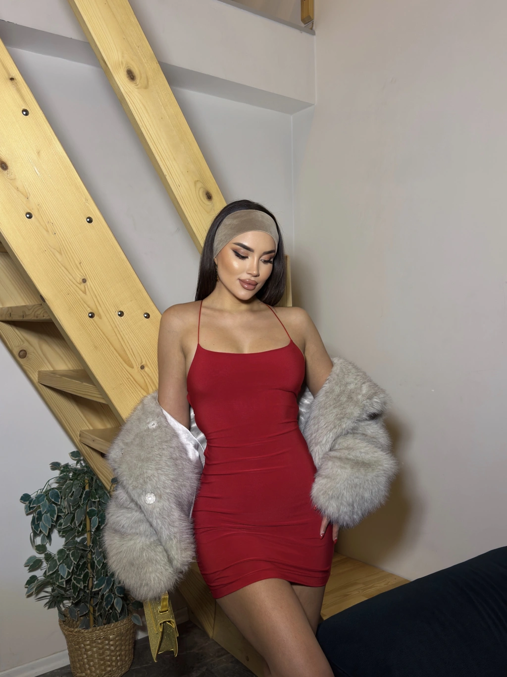 Kırmızı Sırt Dekolteli Tasarım Mini Elbise