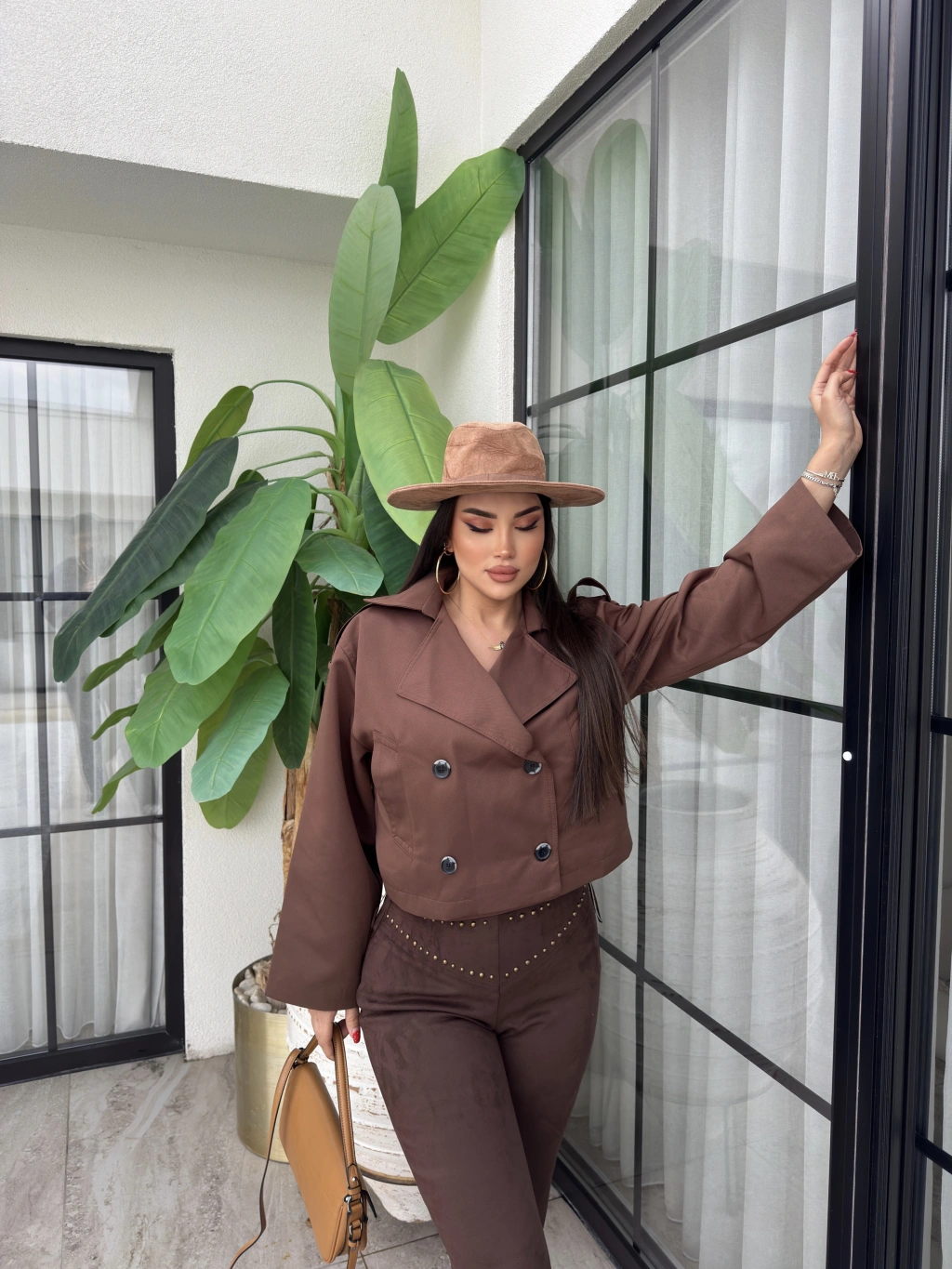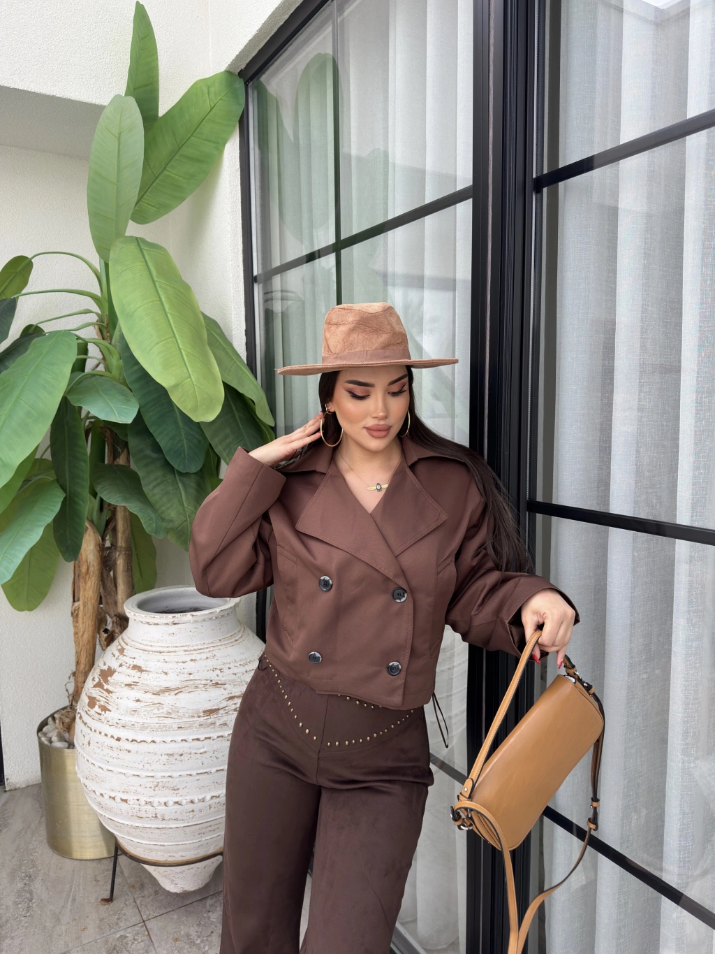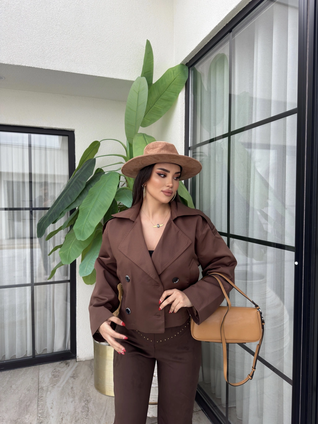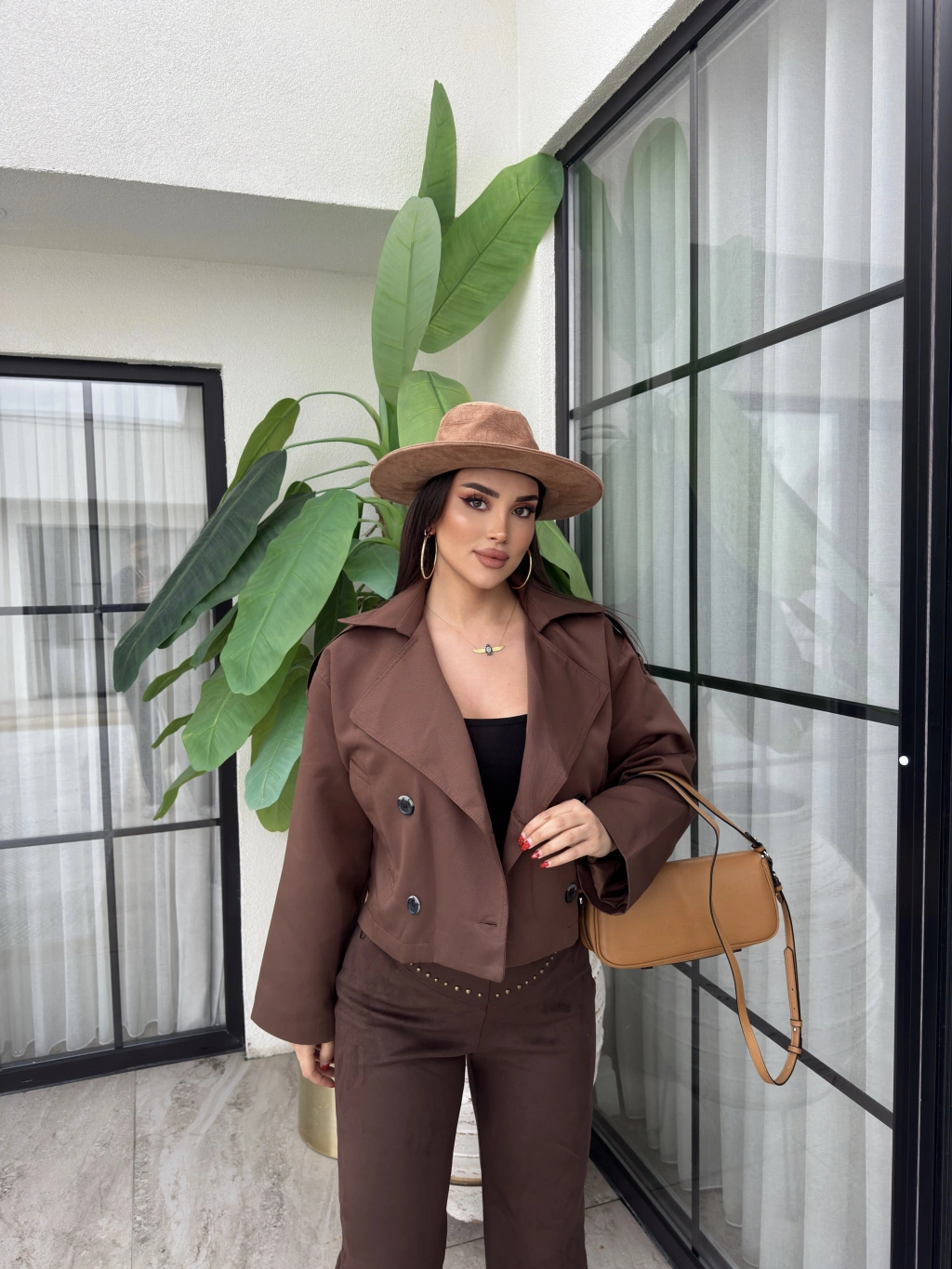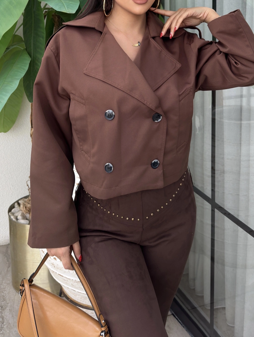 Kahverengi Düğmeli Kısa Trençkot