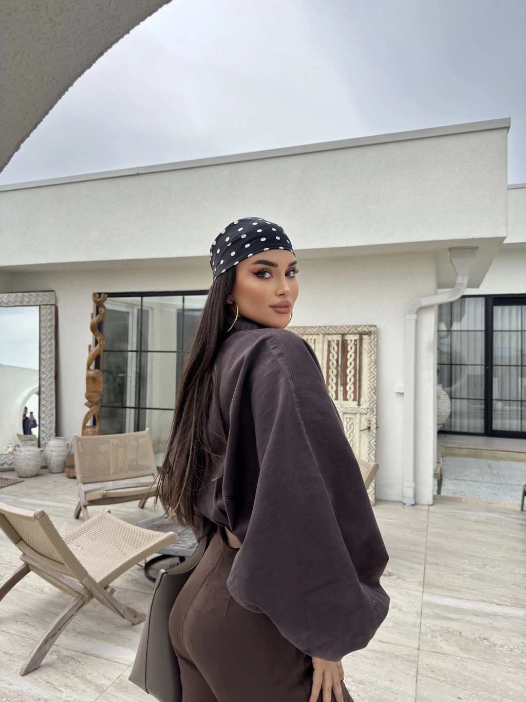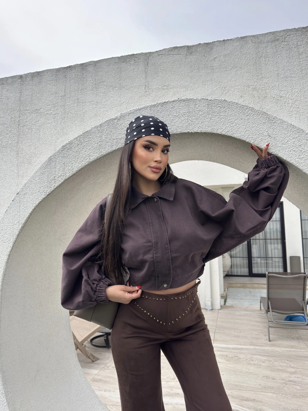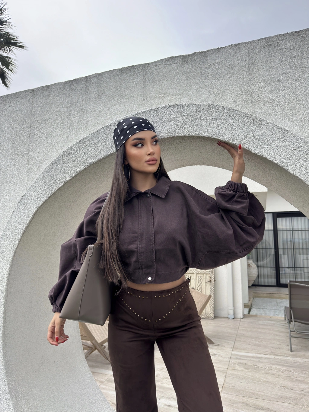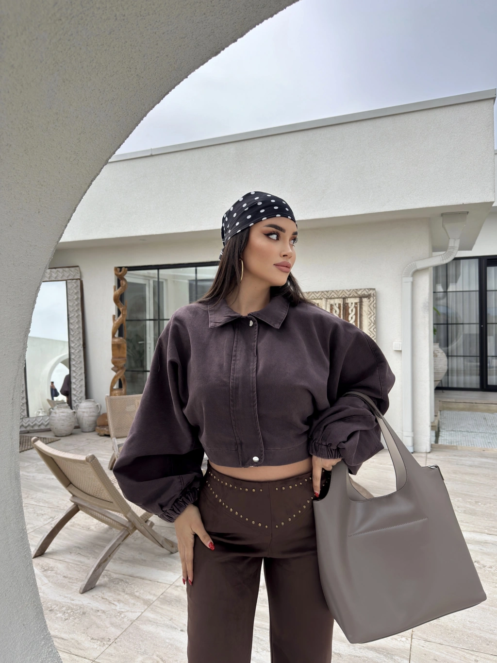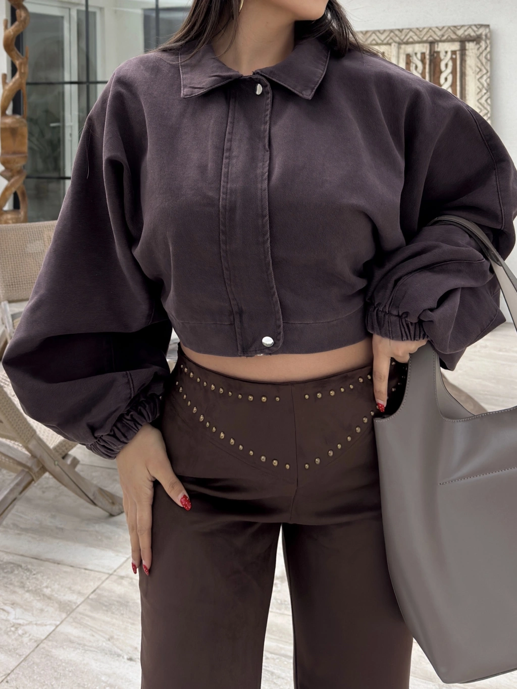 Kahverengi Balon Kol Kot ceket