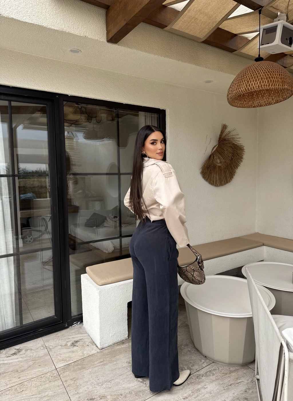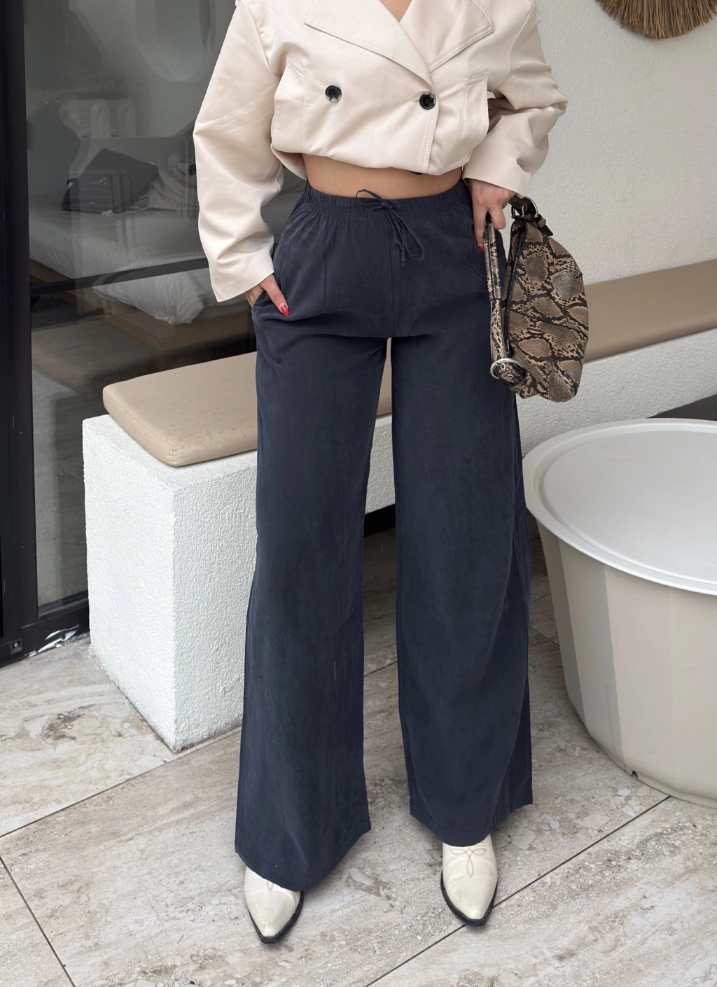 Füme Beli Lastikli Pantolon