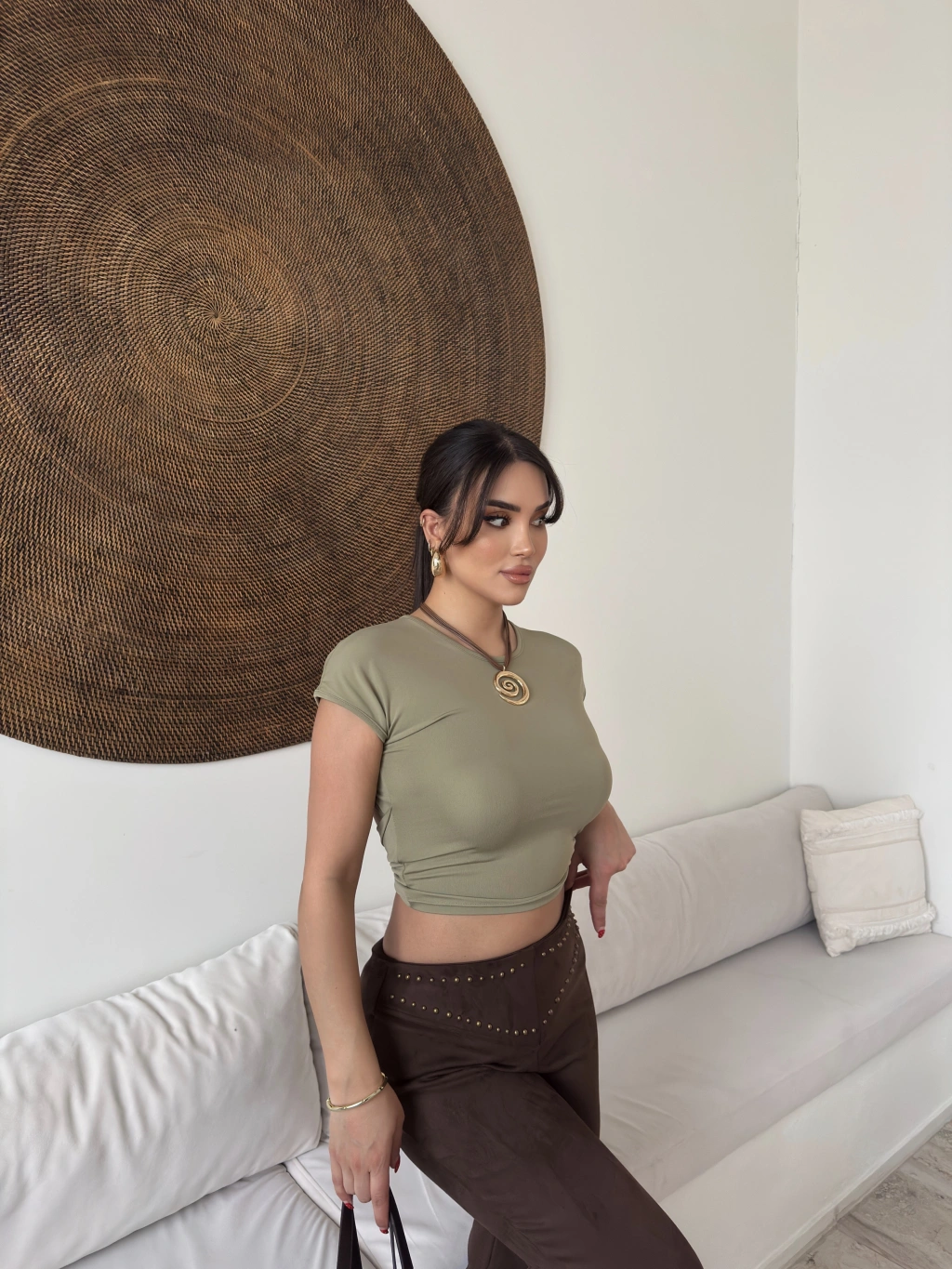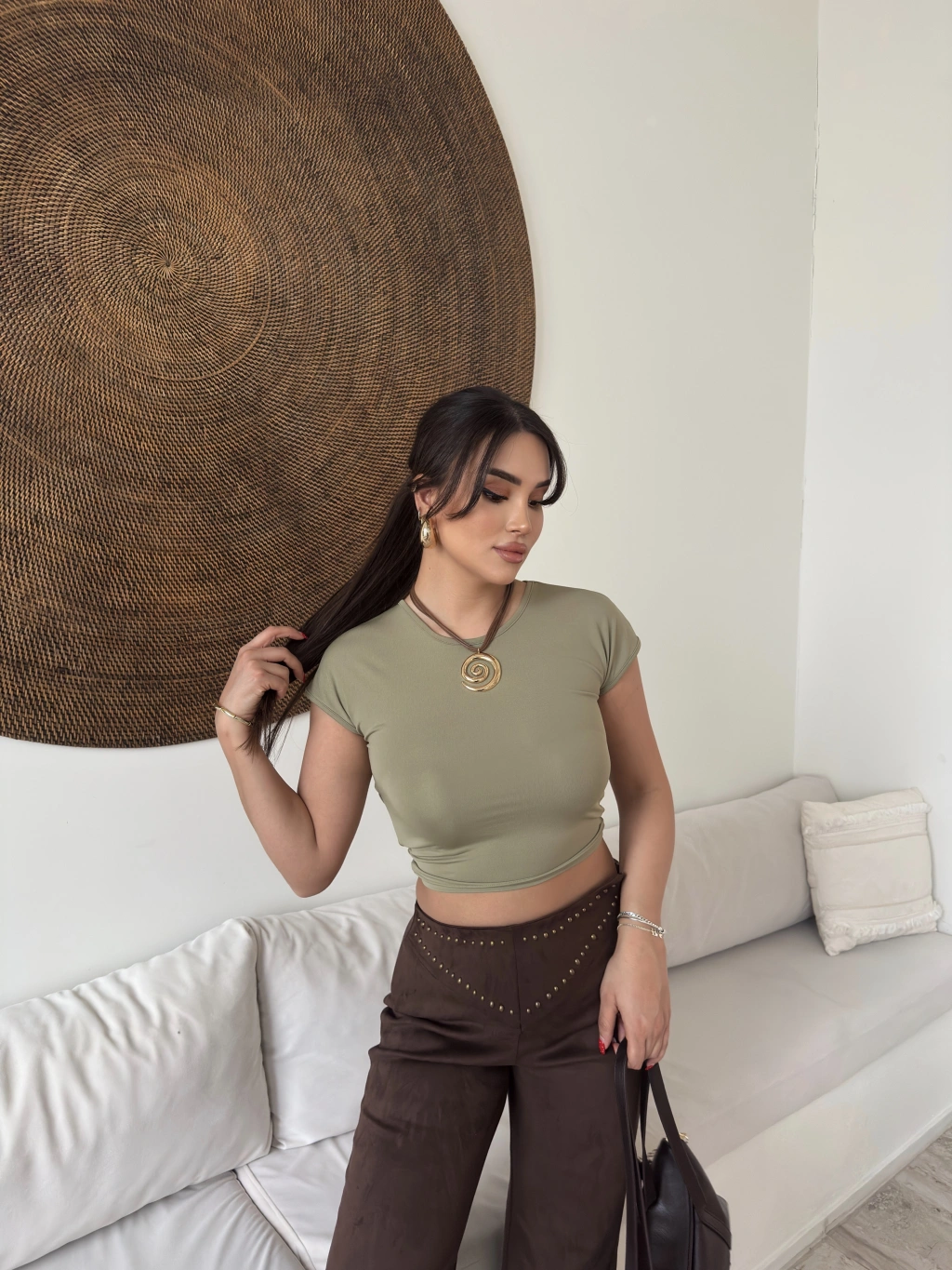 Mini Yeşili Sırt Detay Basic Crop