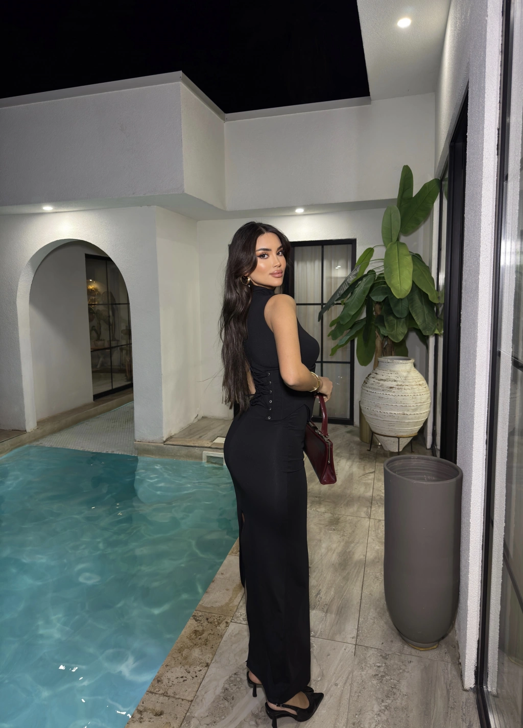 Siyah Korseli Uzun Elbise