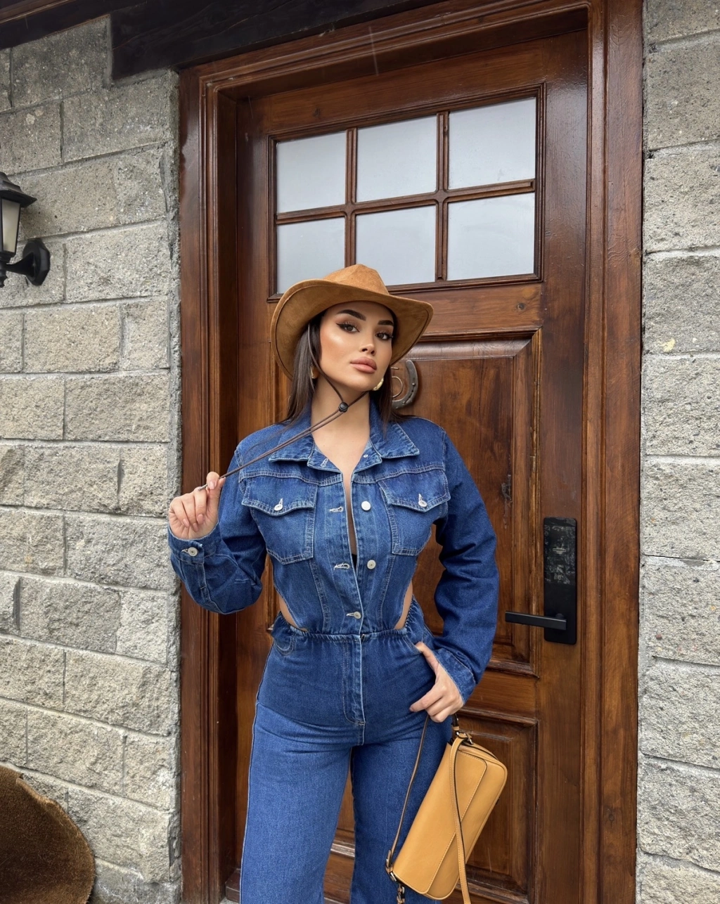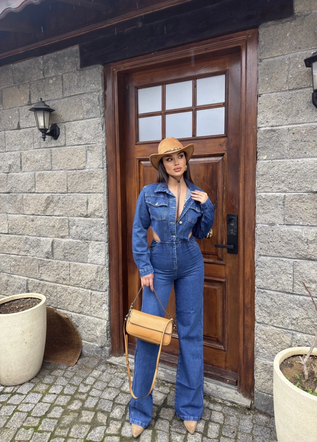 Mavi Bel Dekolteli Kot Tulum