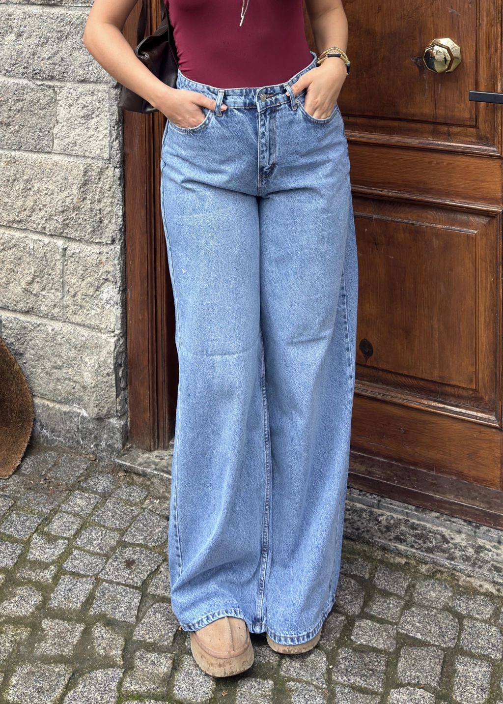 Mavi Geniş Paça Dökümlü Pantolon