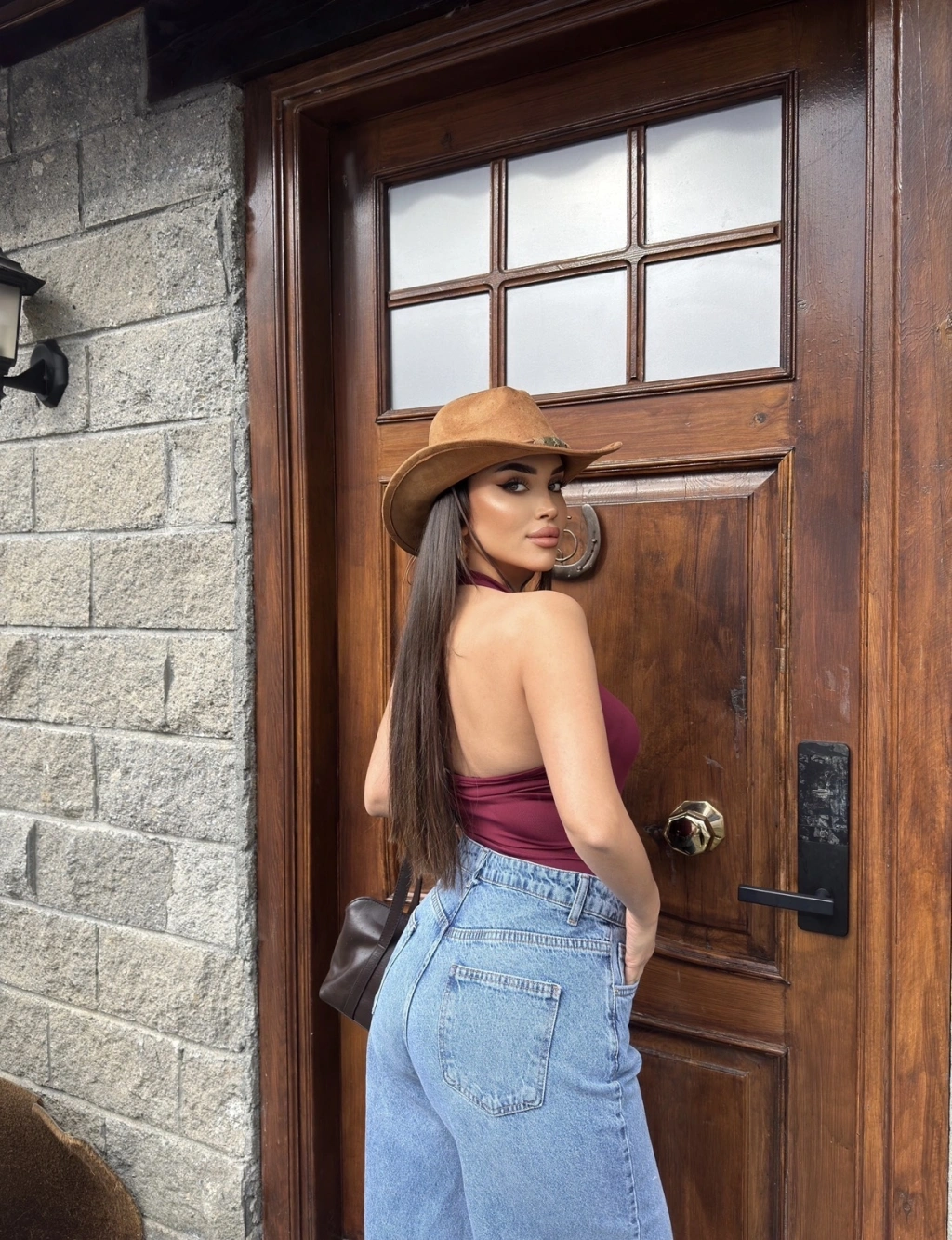 Bordo Boyundan Geçirmeli Bodysuit