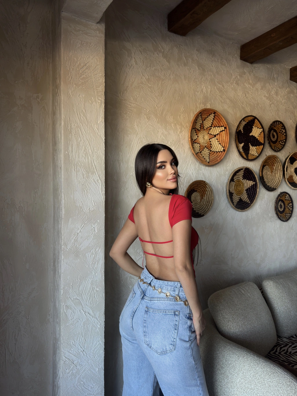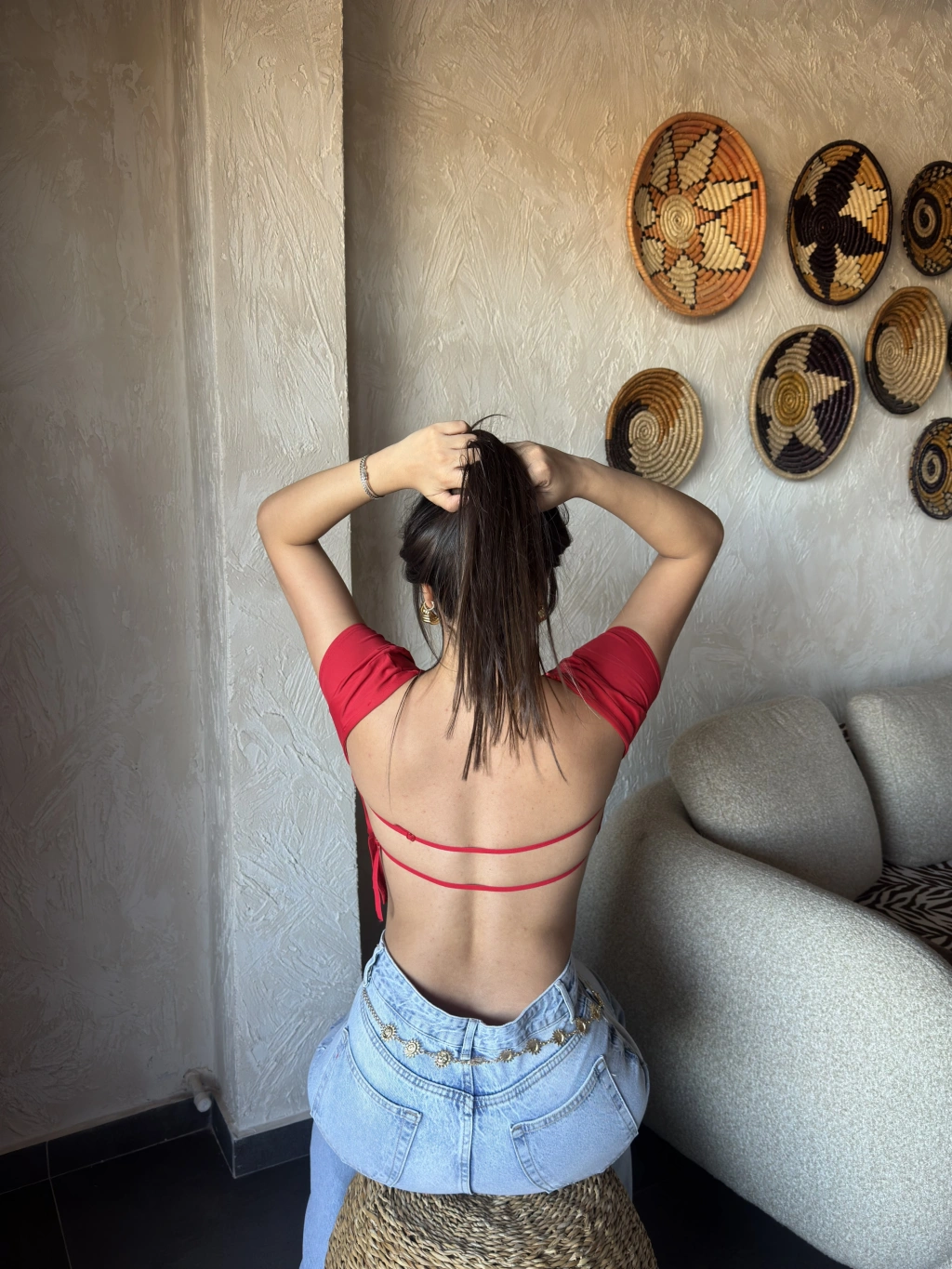 Kırmızı Sırt Ayarlanabilir Crop