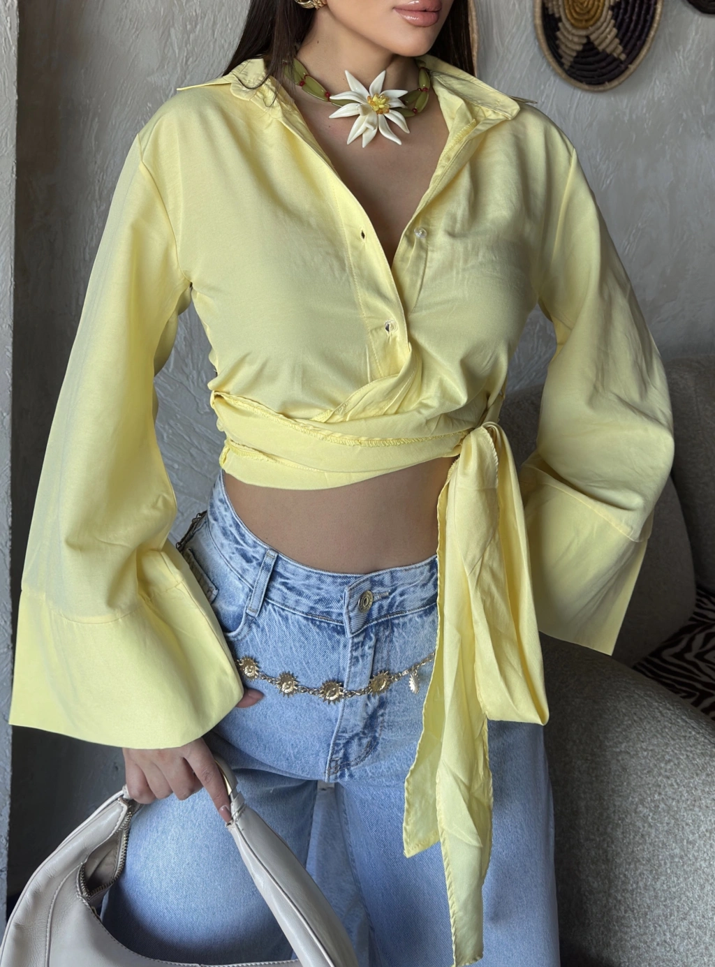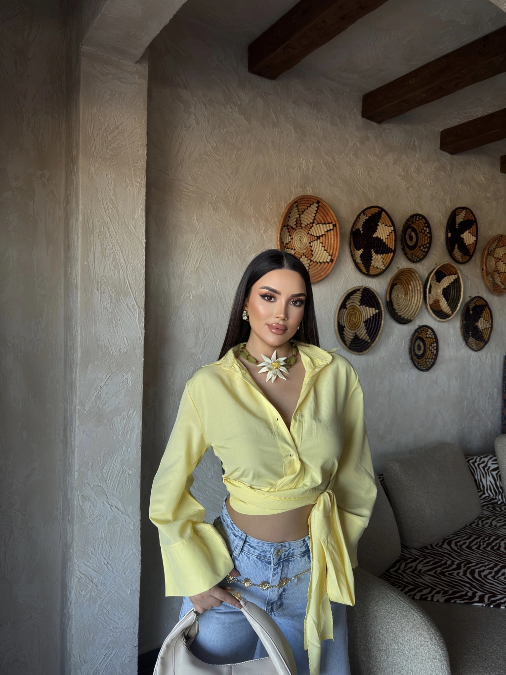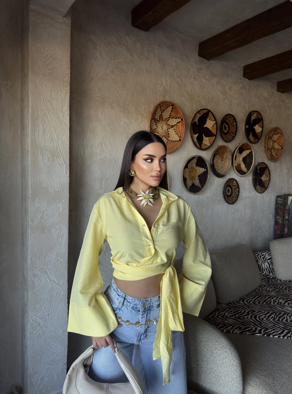 Sarı İspanyol Kol Bağlamalı Gömlek