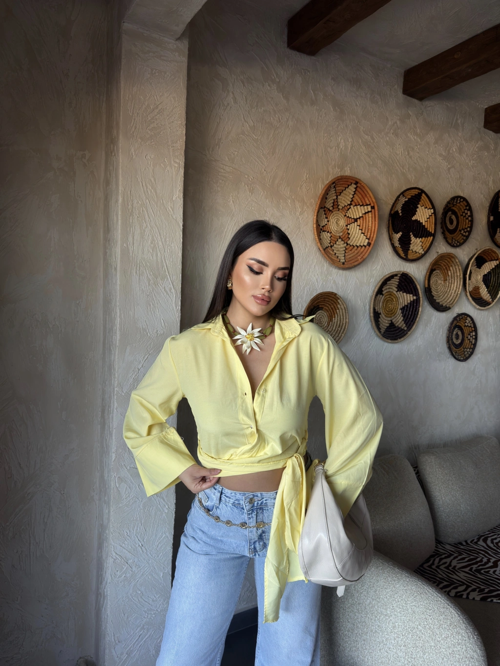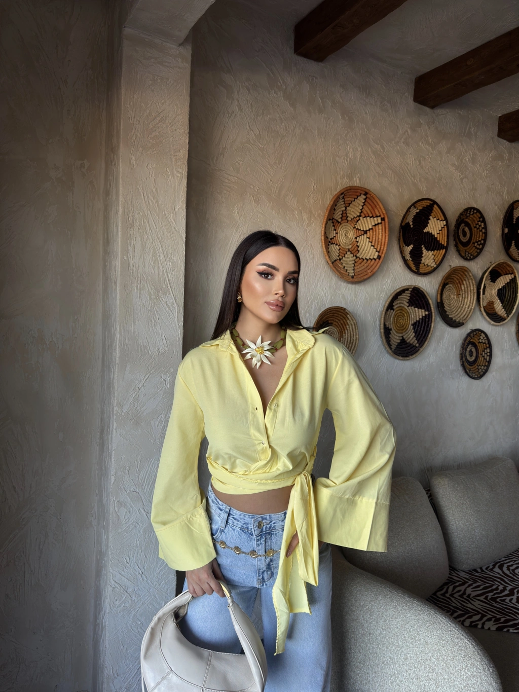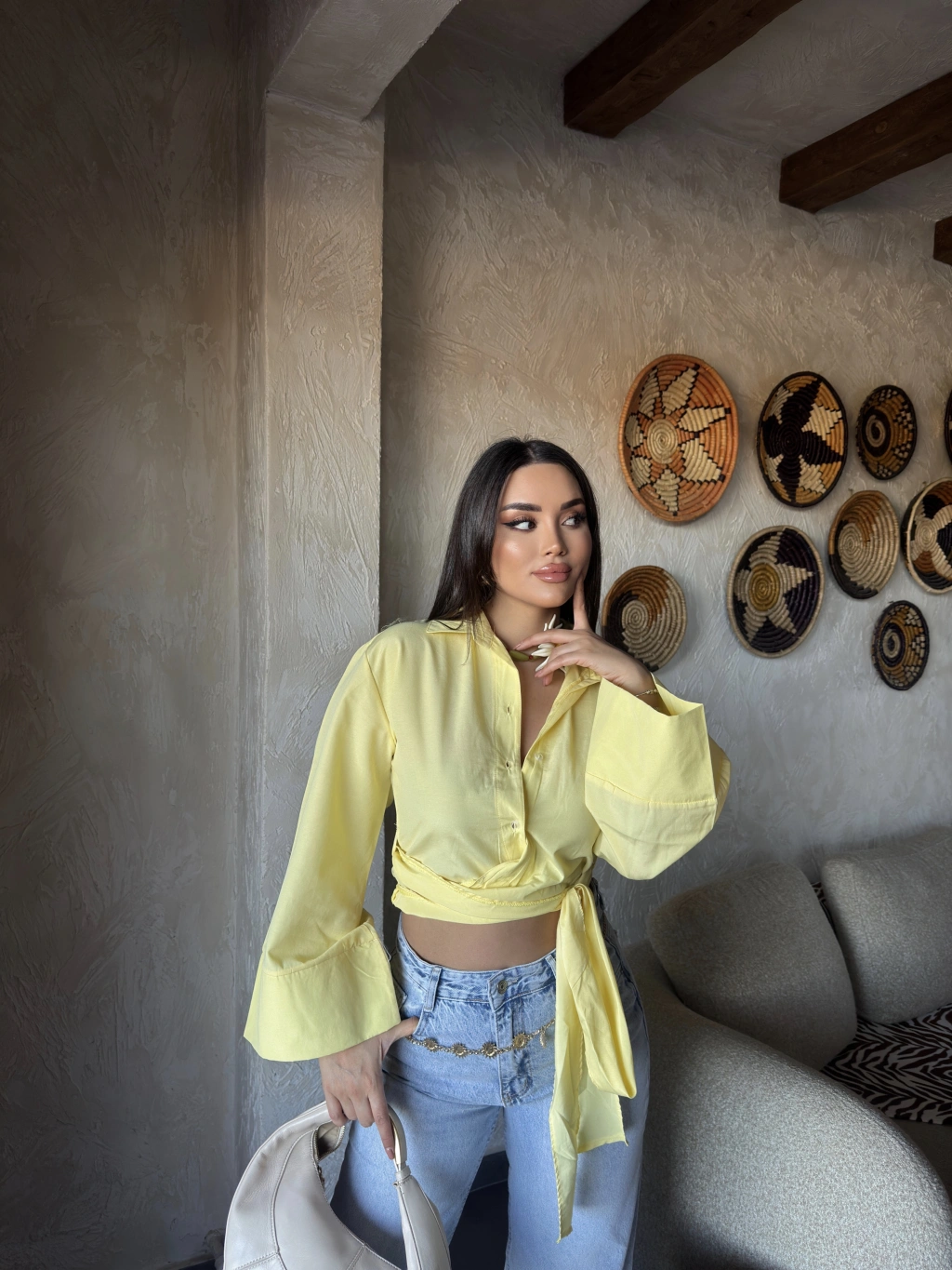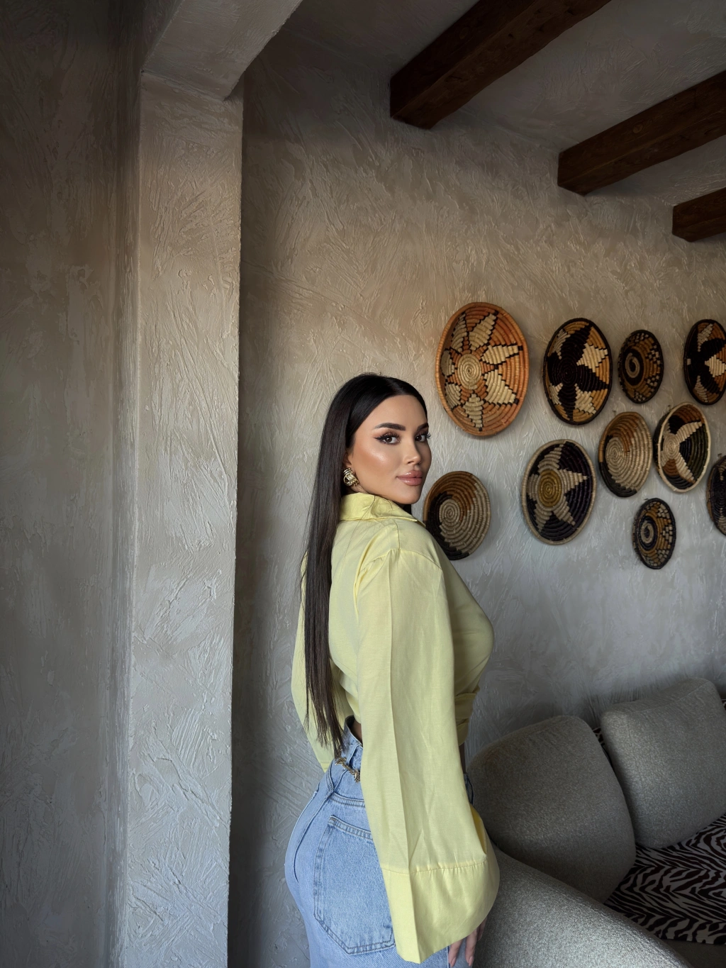 Sarı İspanyol Kol Bağlamalı Gömlek