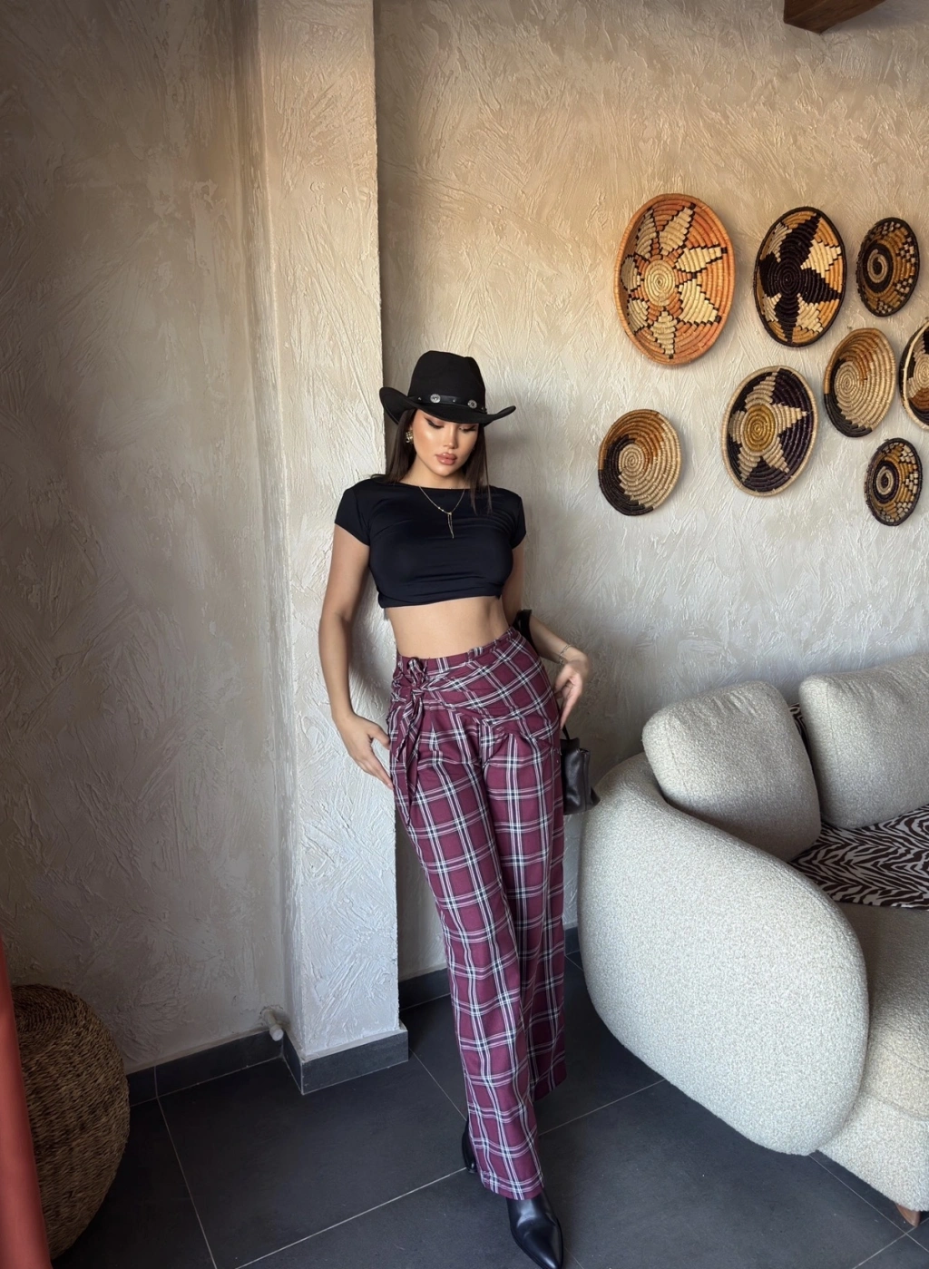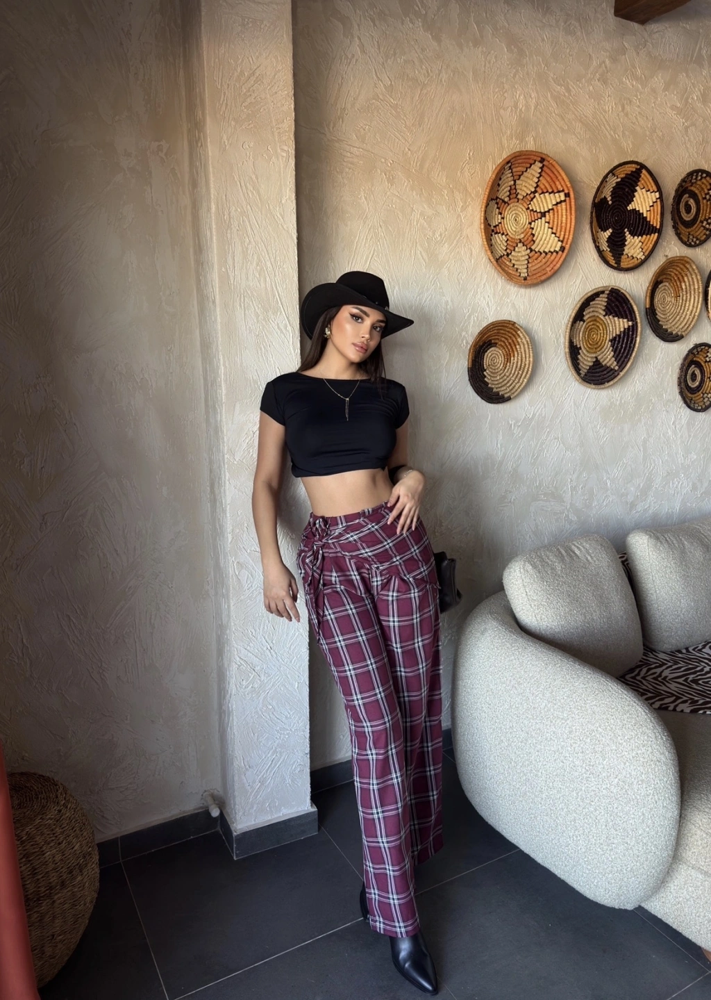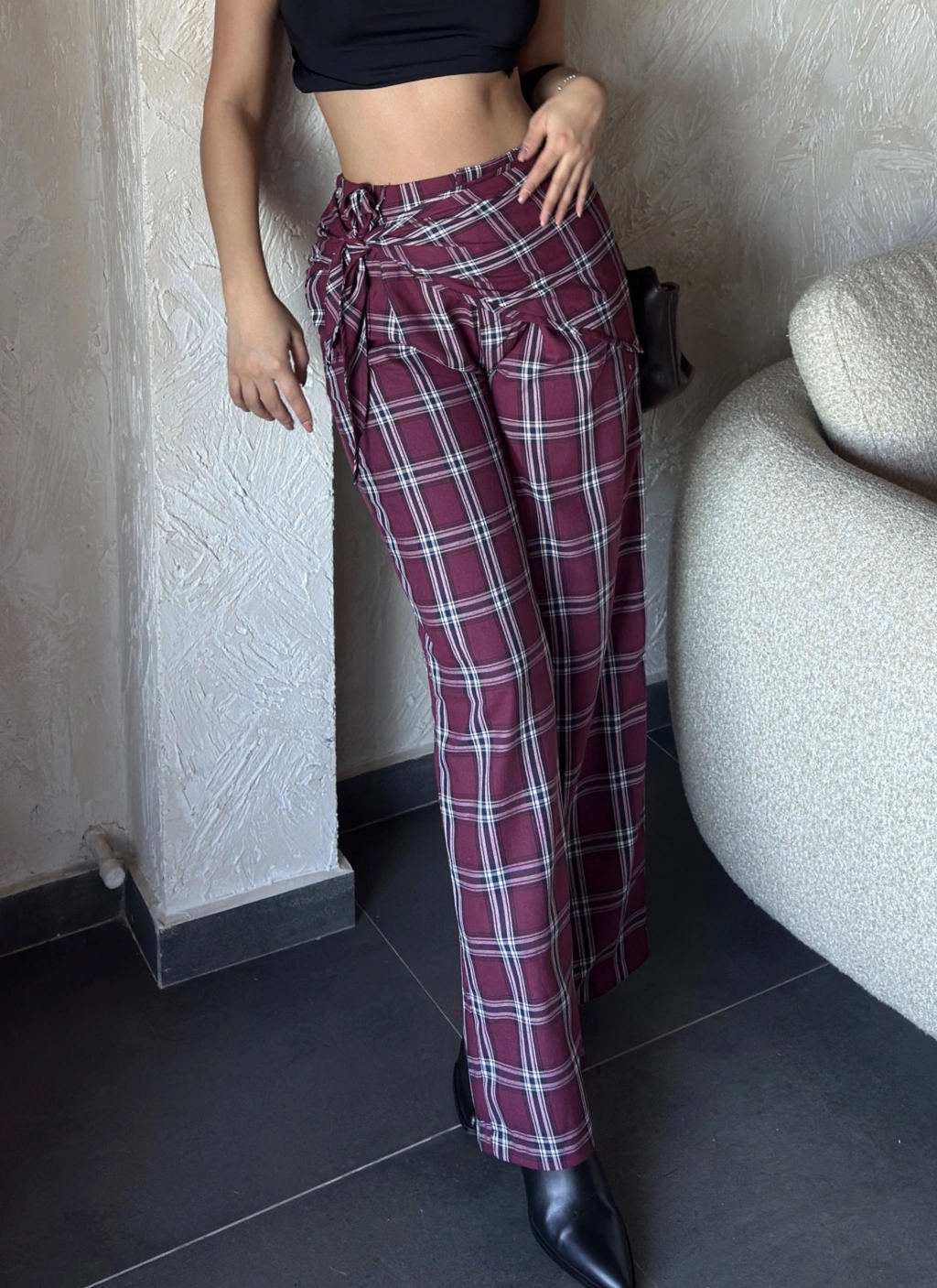 Bordo Beli Fularlı Tailored Fit Pantolon