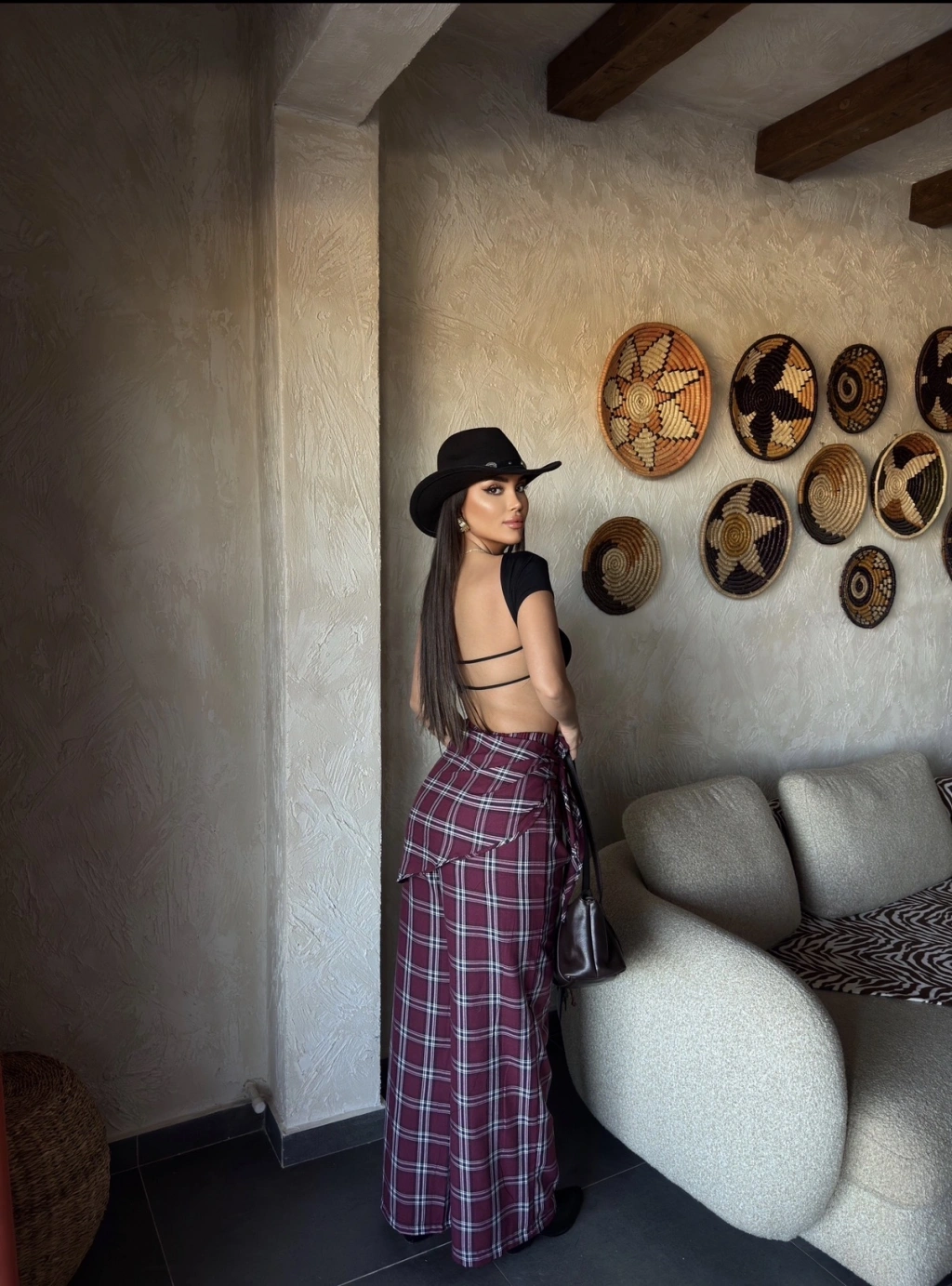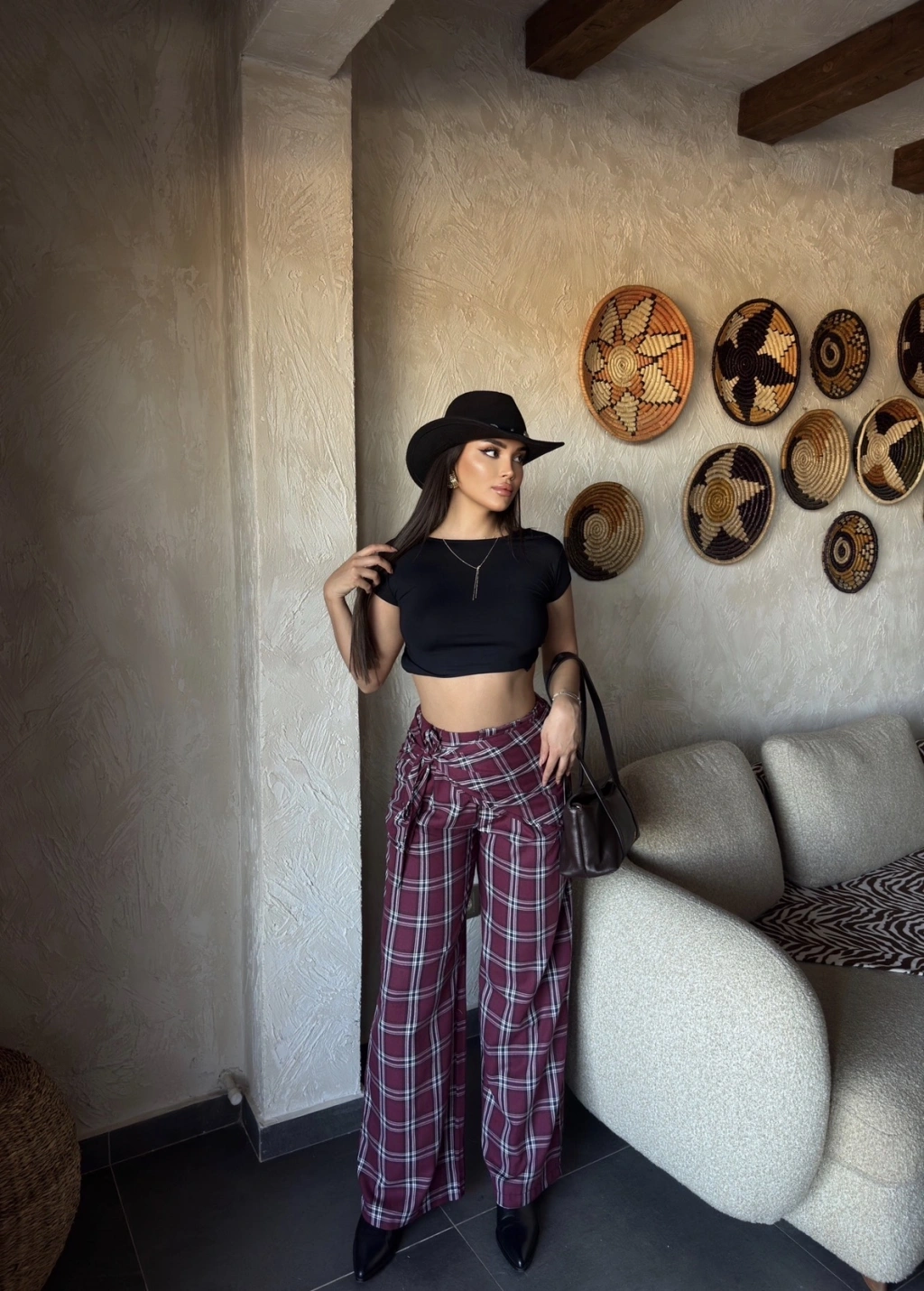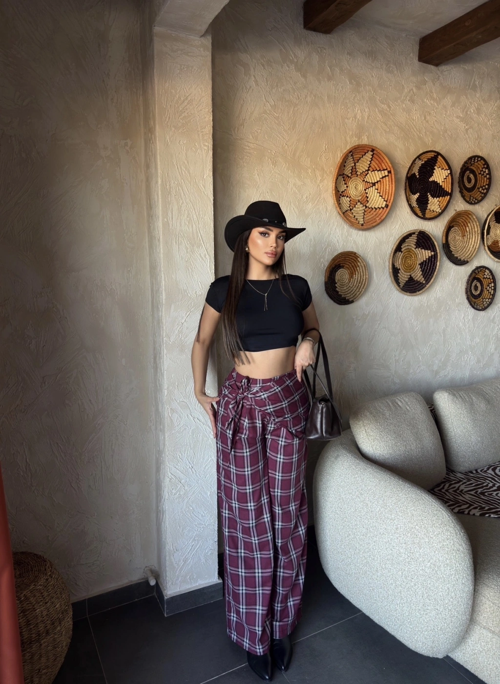 Bordo Beli Fularlı Tailored Fit Pantolon