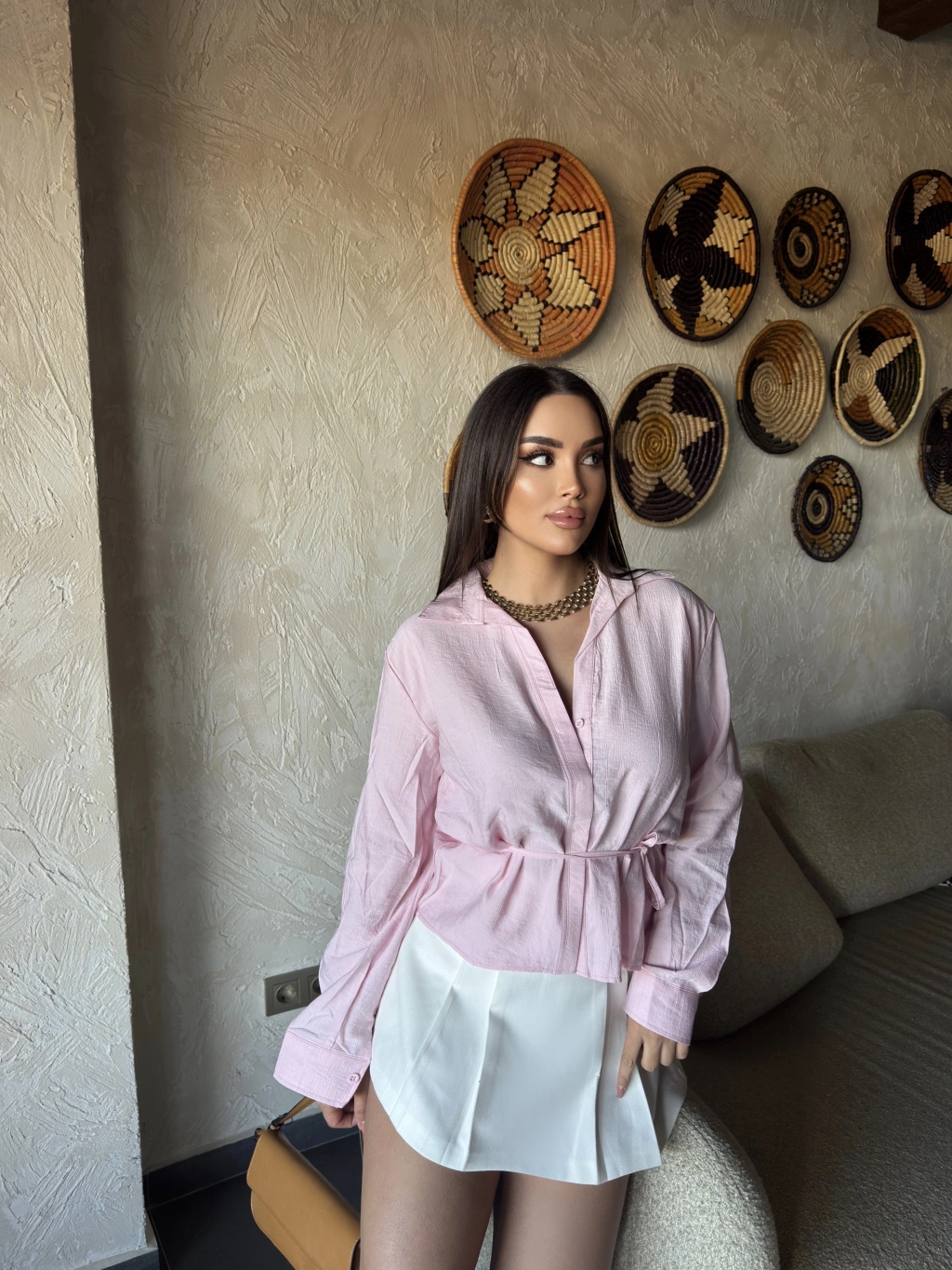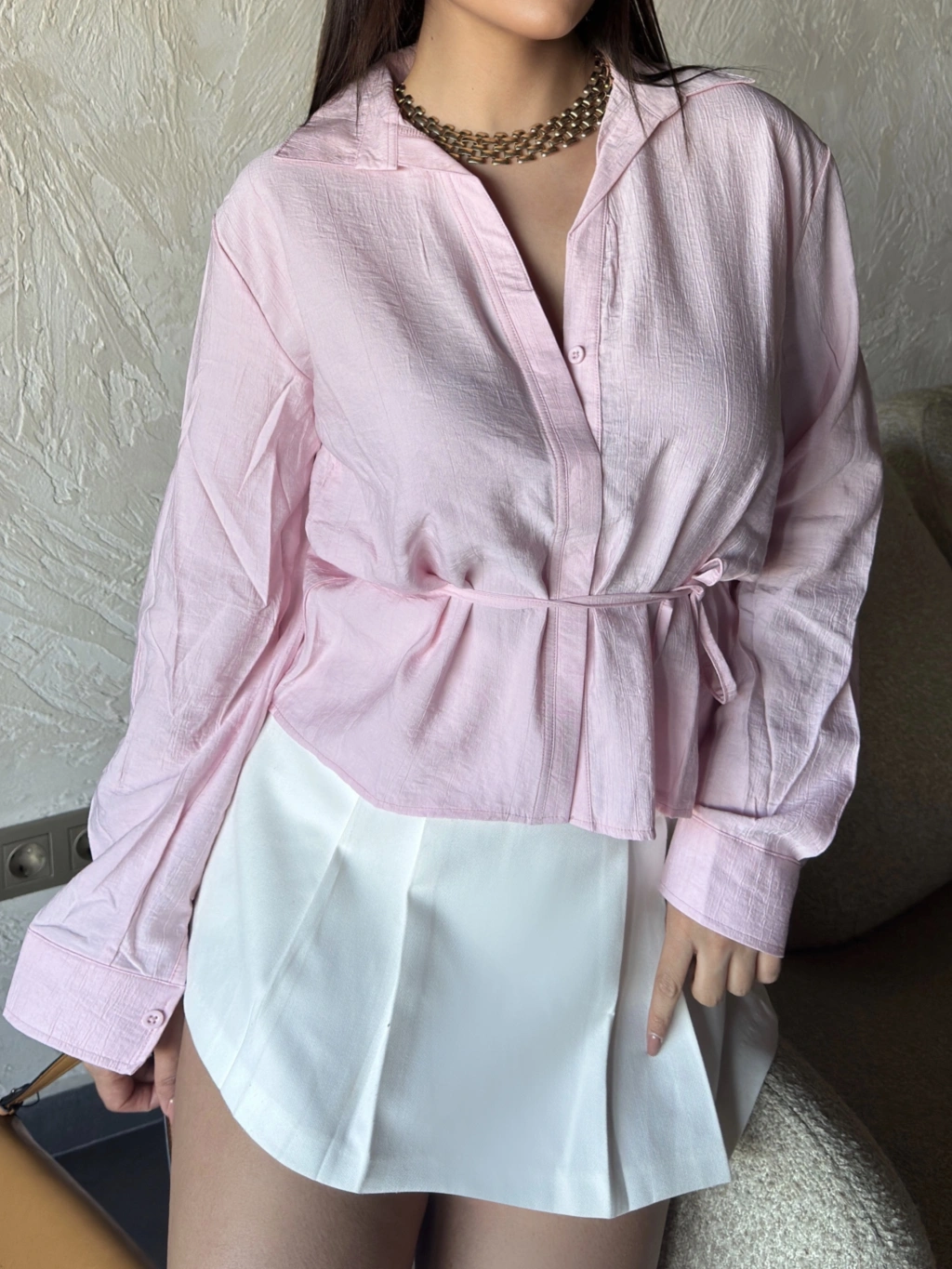 Pembe Gizli Düğme Bağlamalı Gömlek