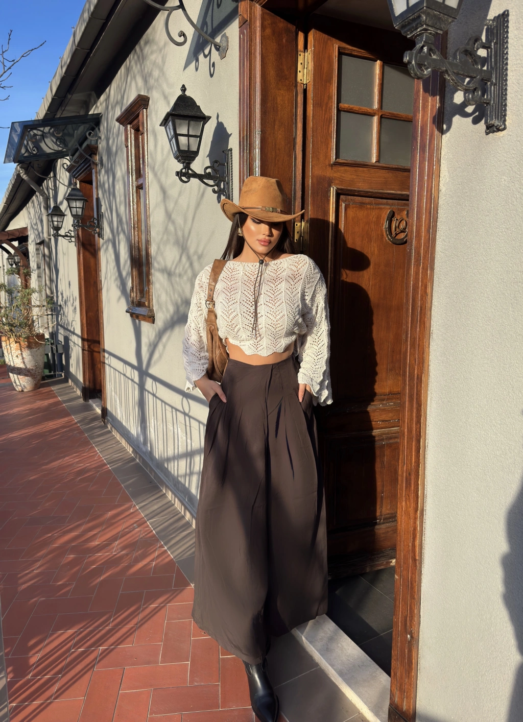 Kahverengi Etek Görünümlü Premium Pantolon