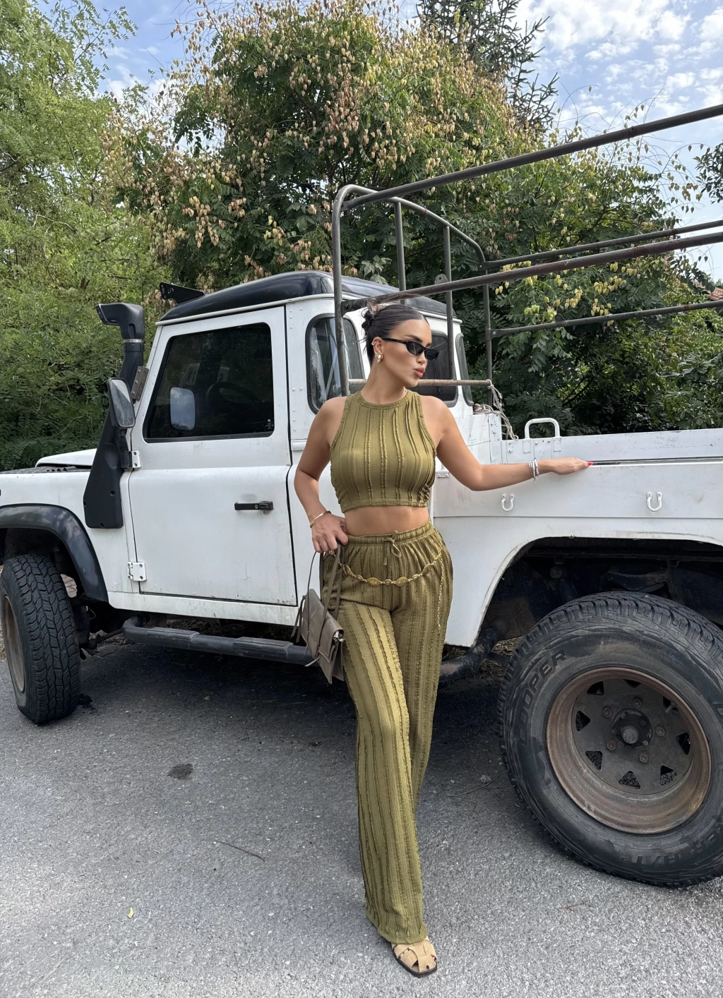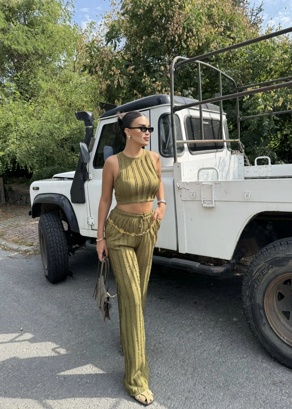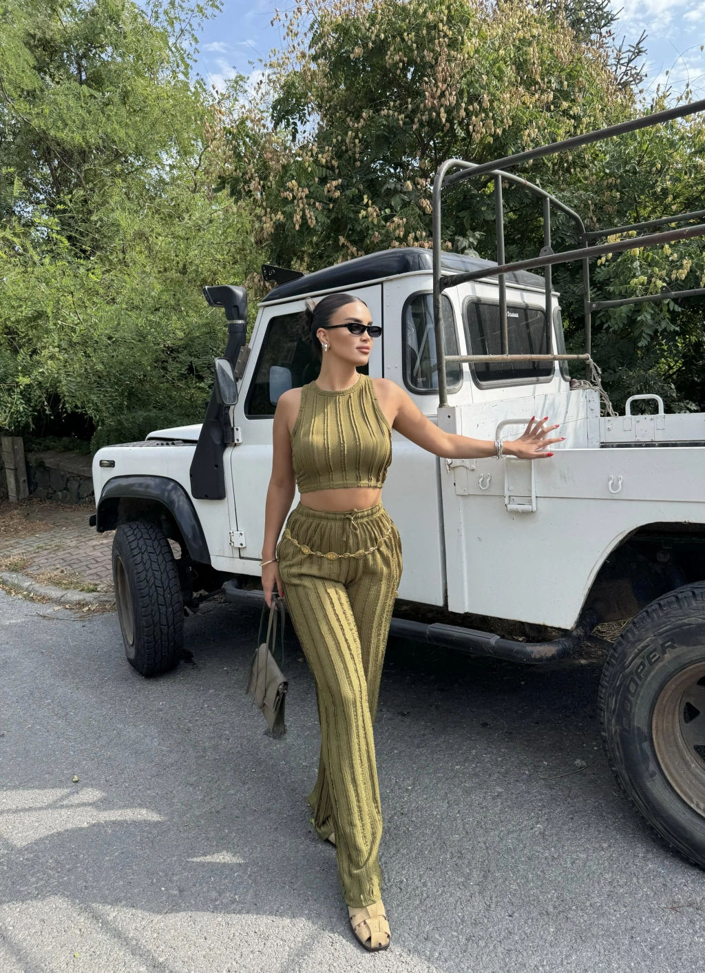 Yeşil Dikiş Detay Kolsuz Alt Üst Takım