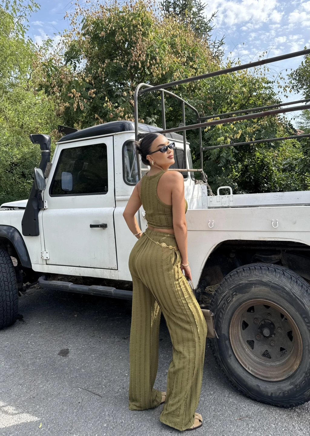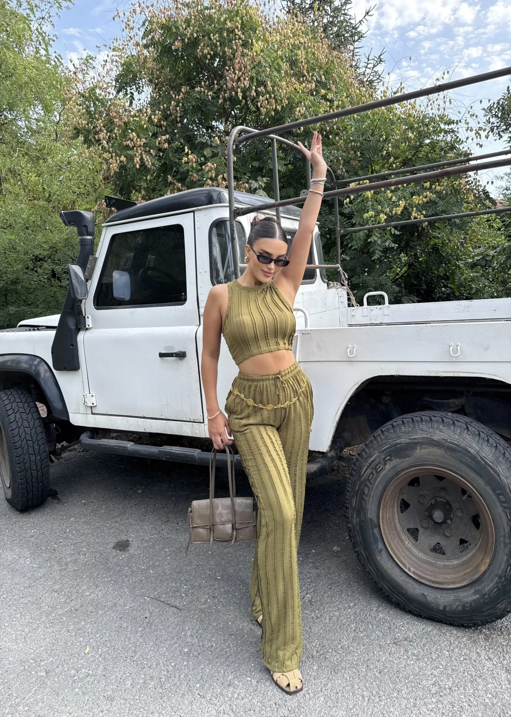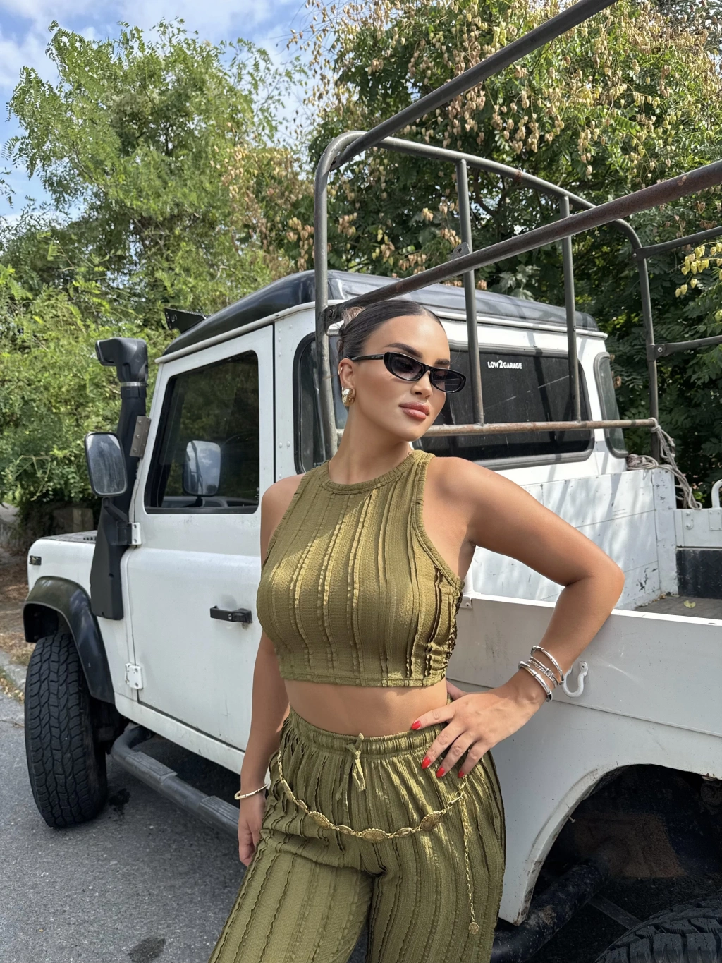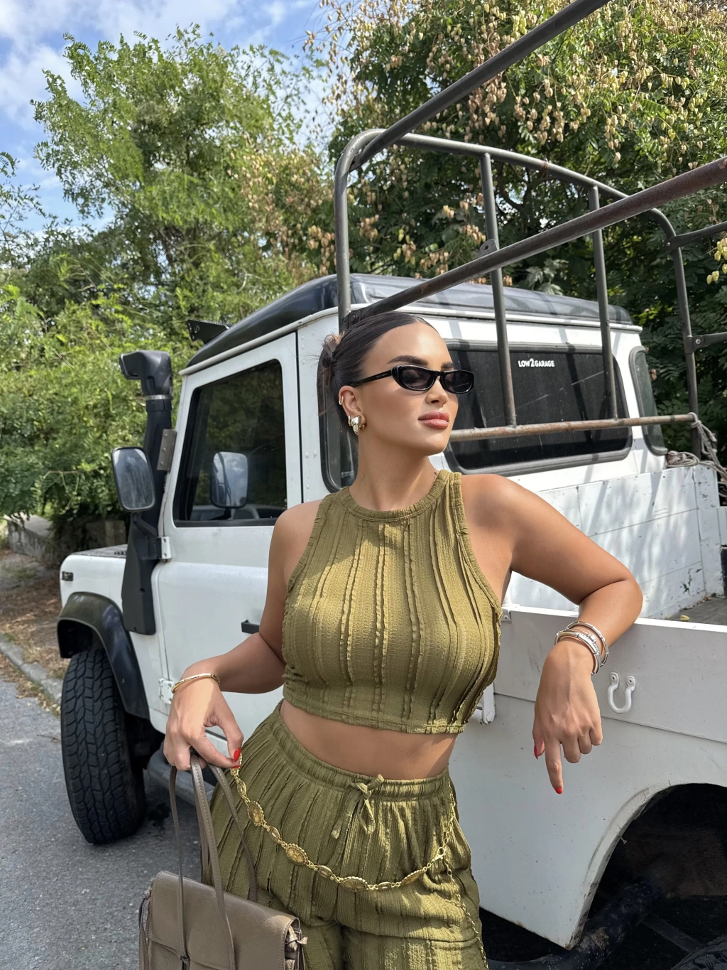 Yeşil Dikiş Detay Kolsuz Alt Üst Takım