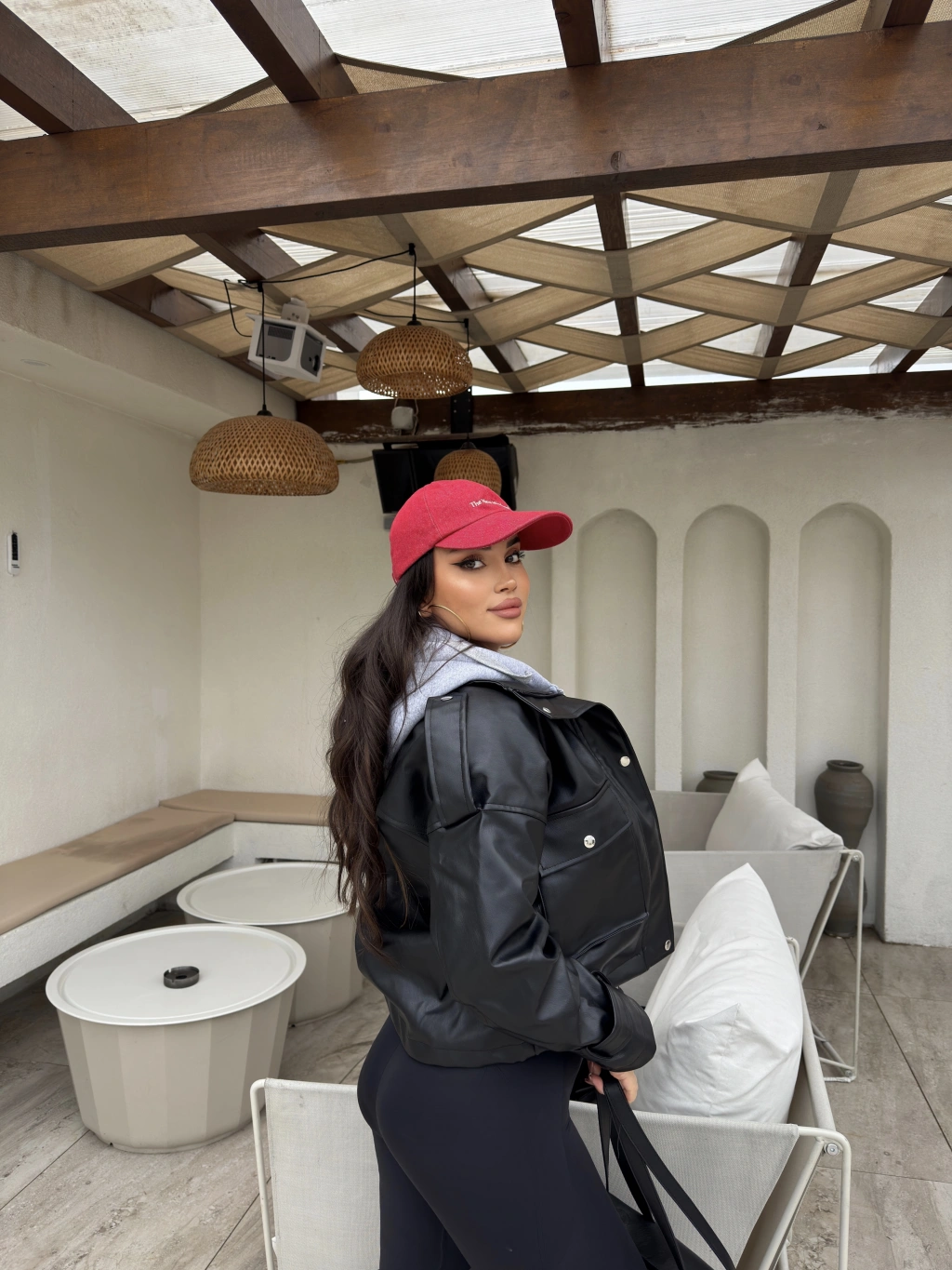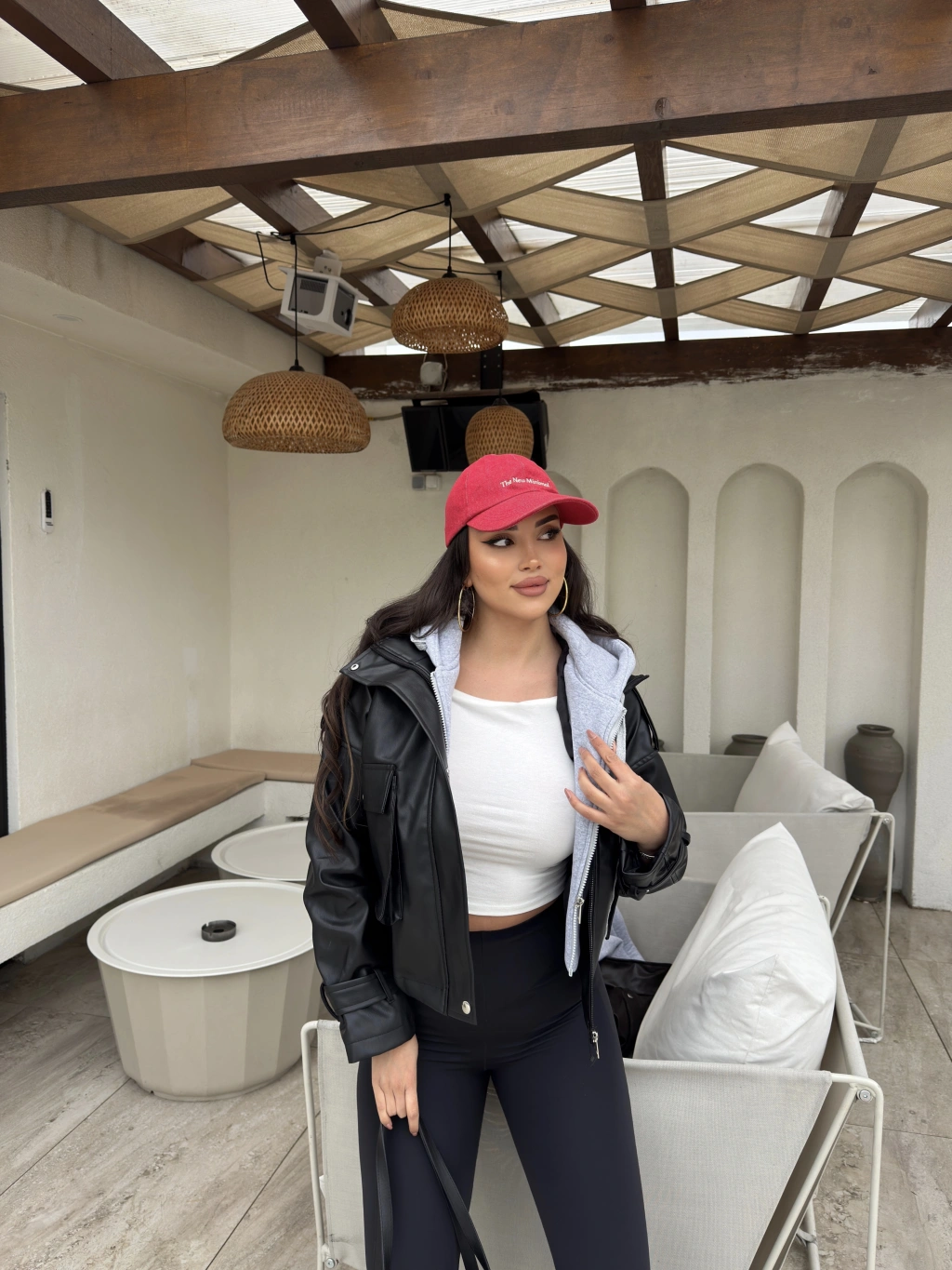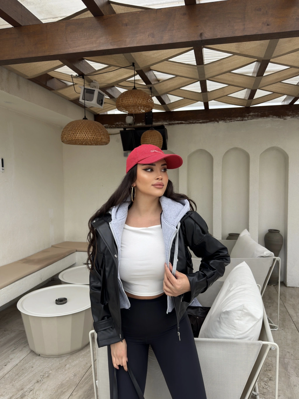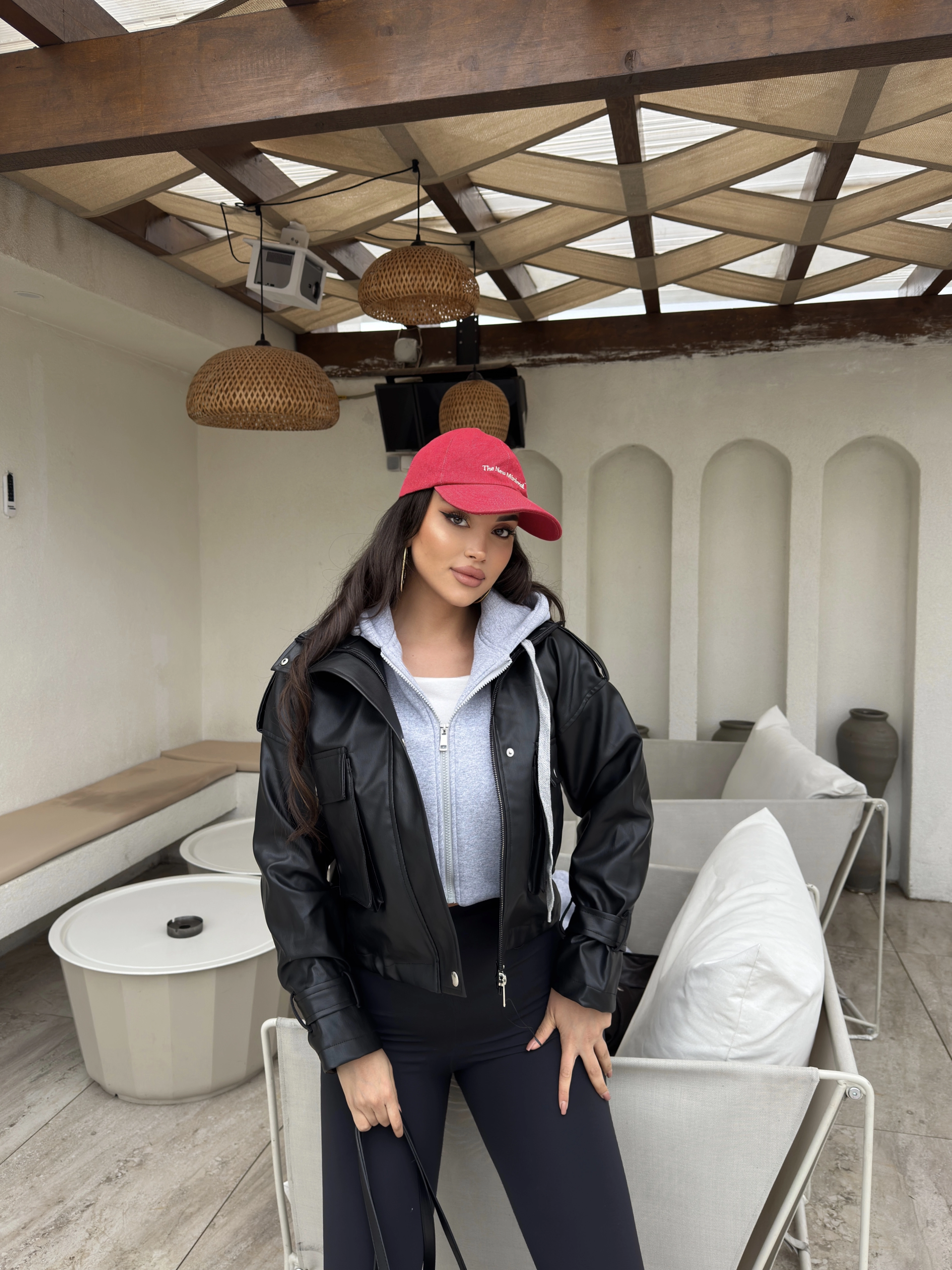 Siyah Kapüşonlu Deri Ceket