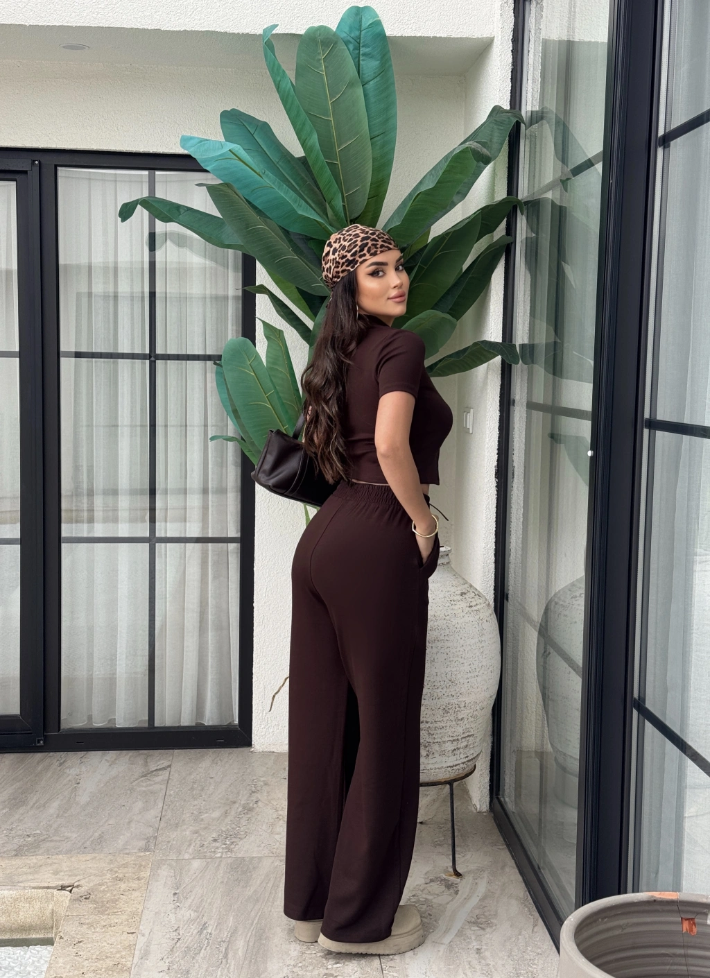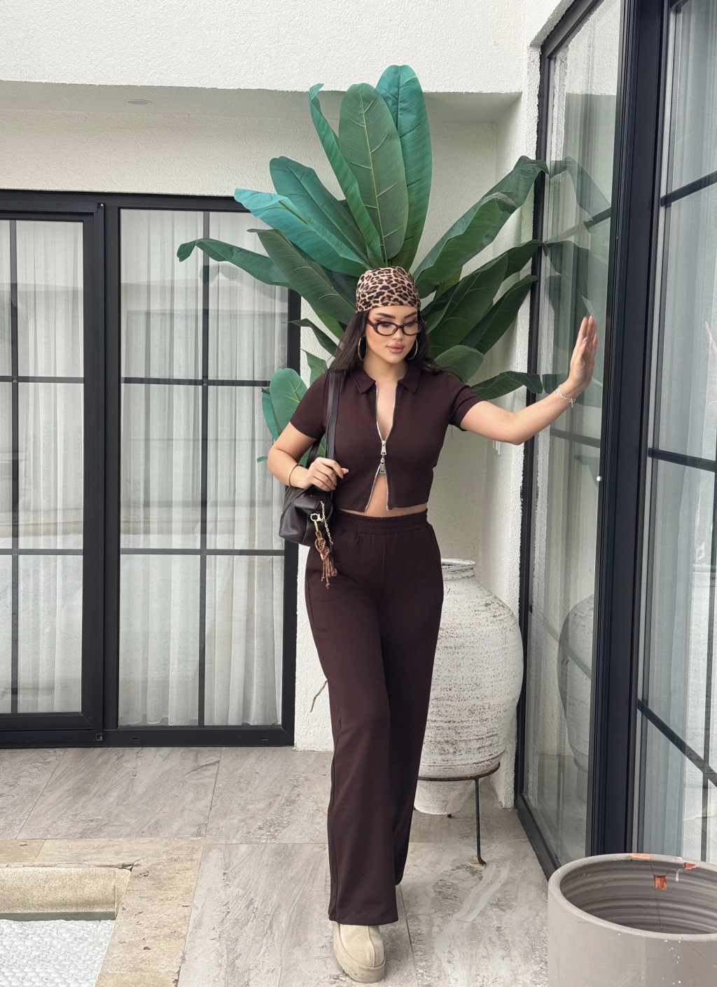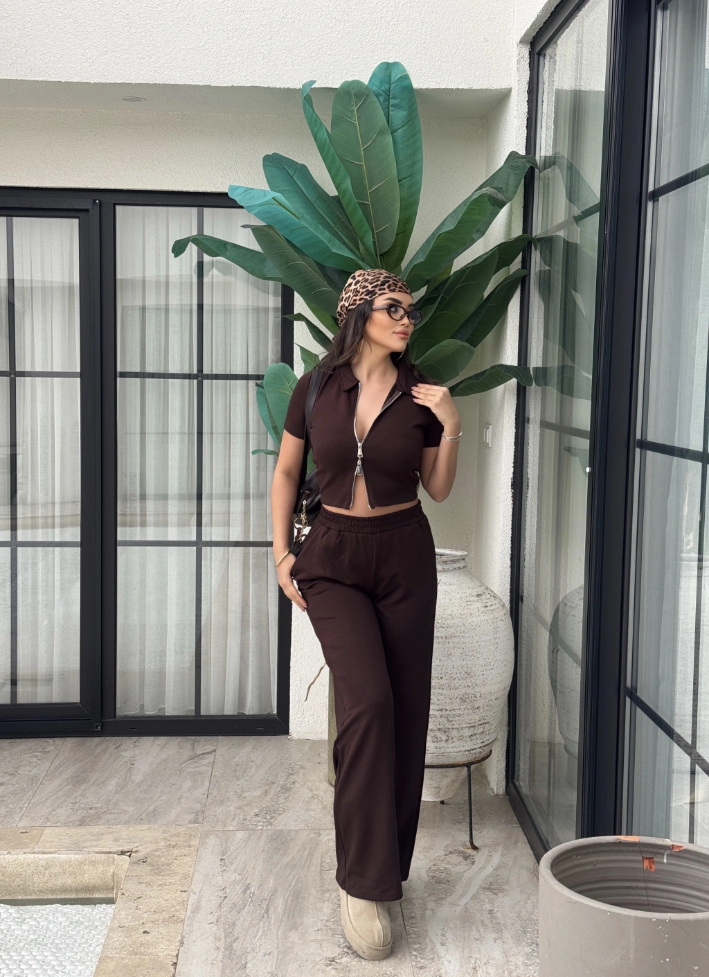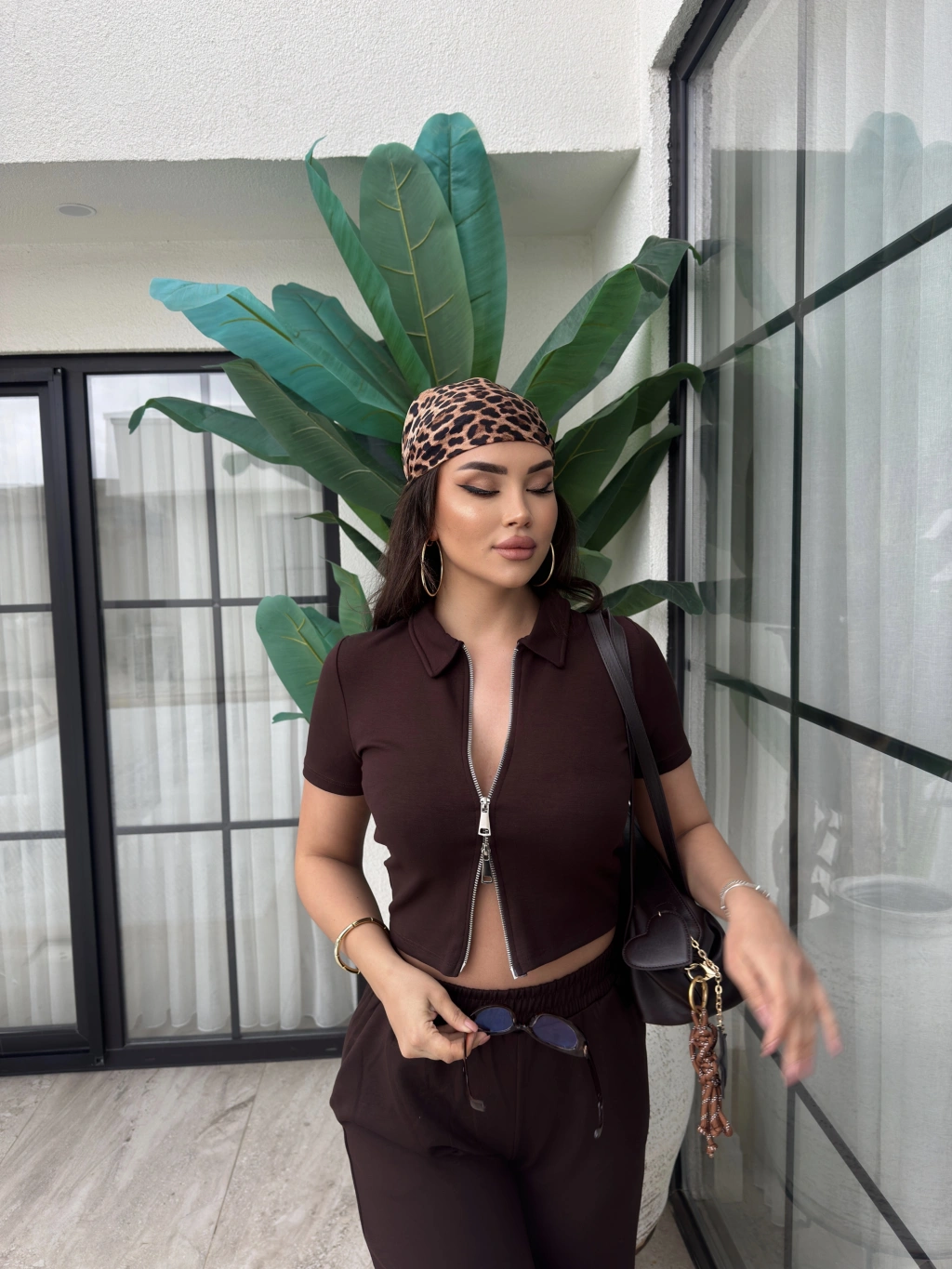 Kahverengi Polo Yaka Çift Fermuarlı Alt Üst Takım