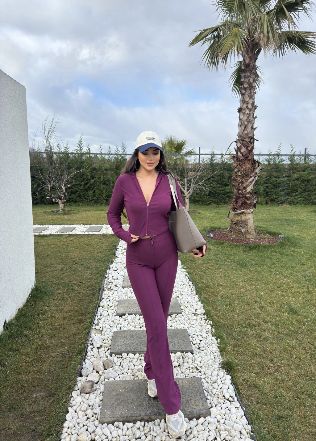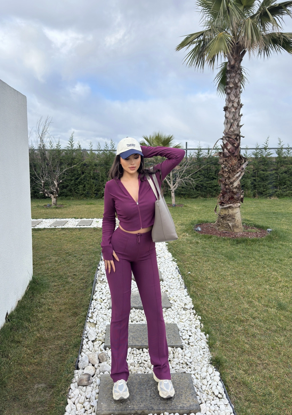 Mürdüm Fitilli Kapüşonlu Tayt Takım