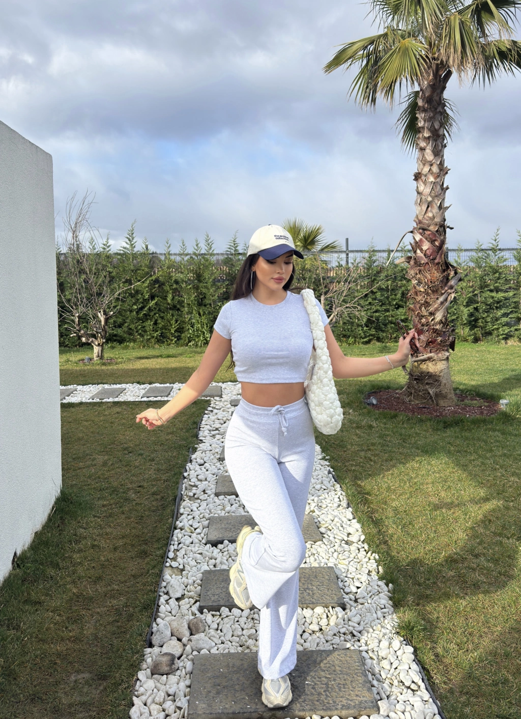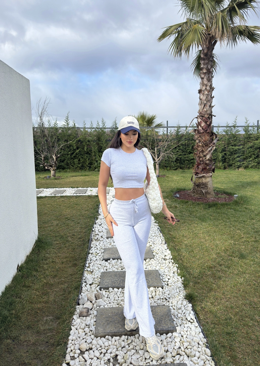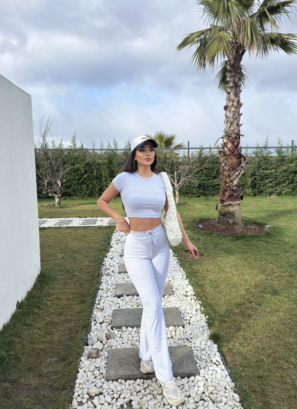 Gri Kısa Kollu Brshk Tayt Pantolon Takım
