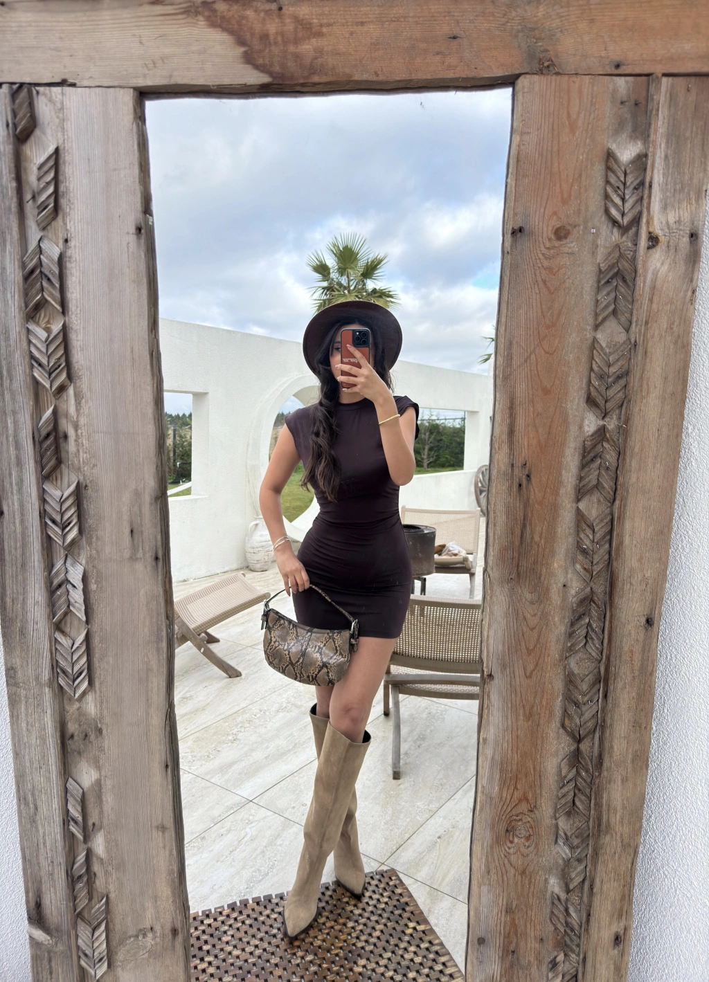 Kahverengi Dik Yaka Mini Elbise