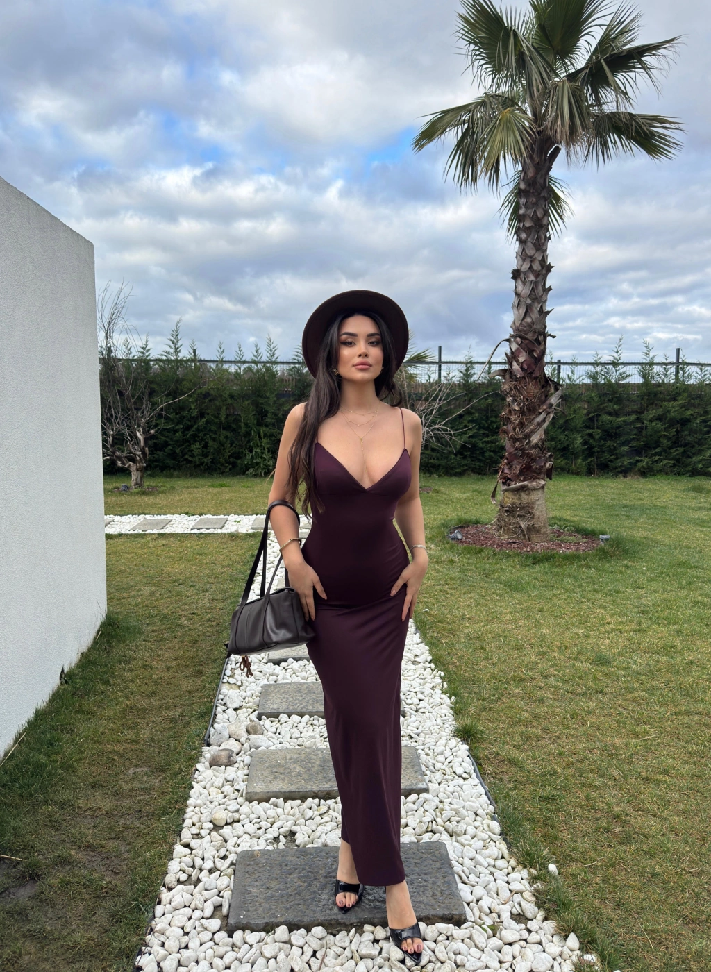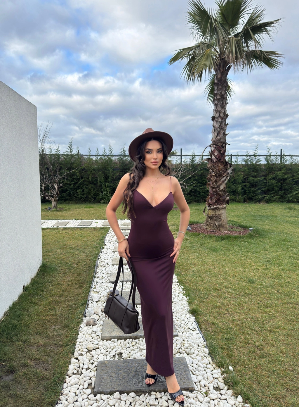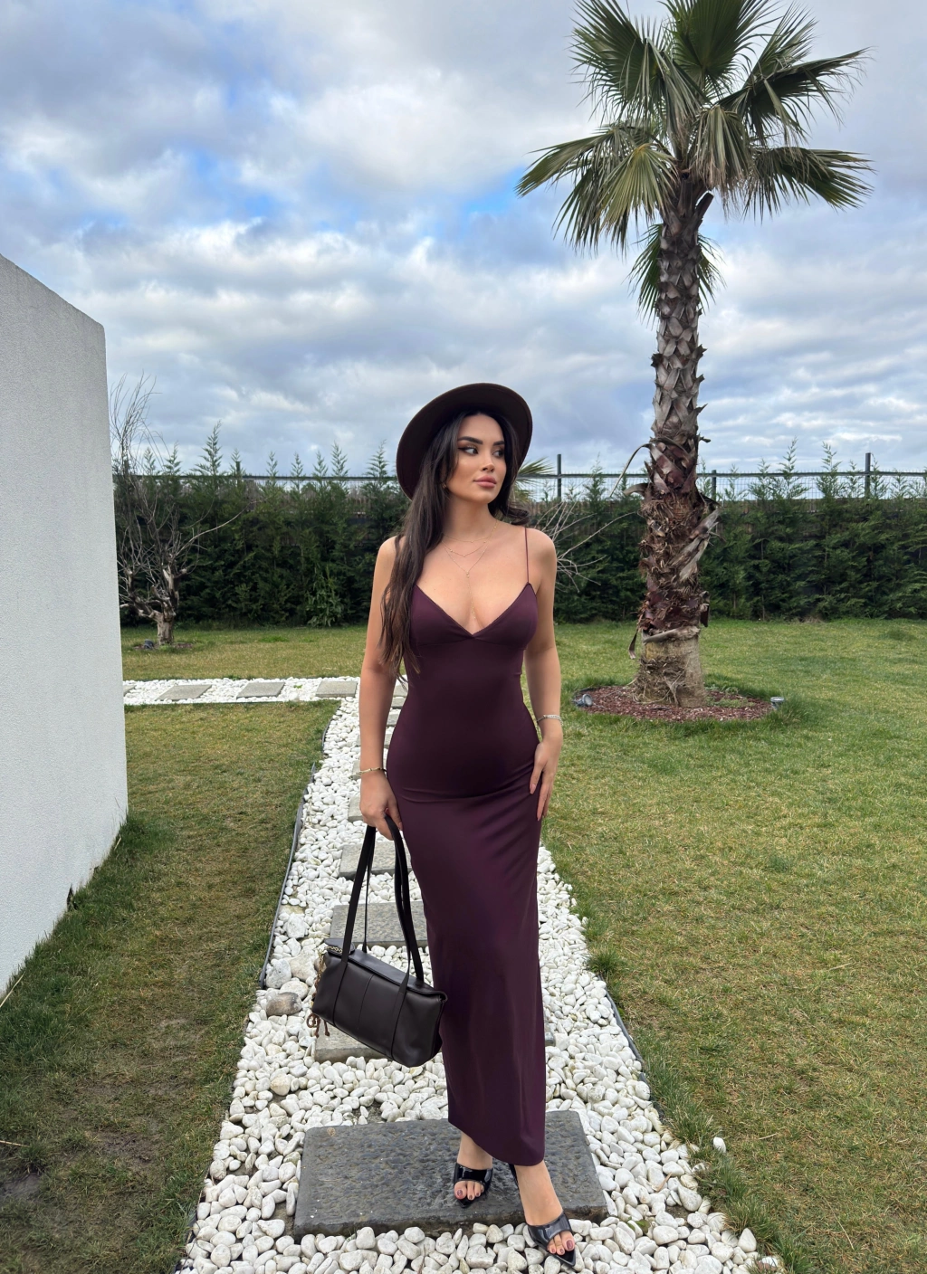 Mürdüm V Yaka Uzun Premium Elbise