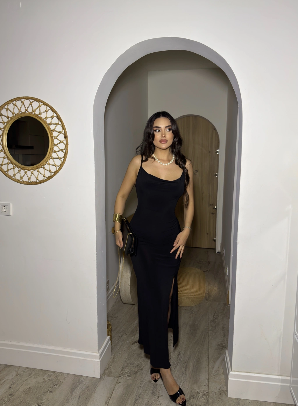 Siyah Degaje Yaka Uzun Elbise