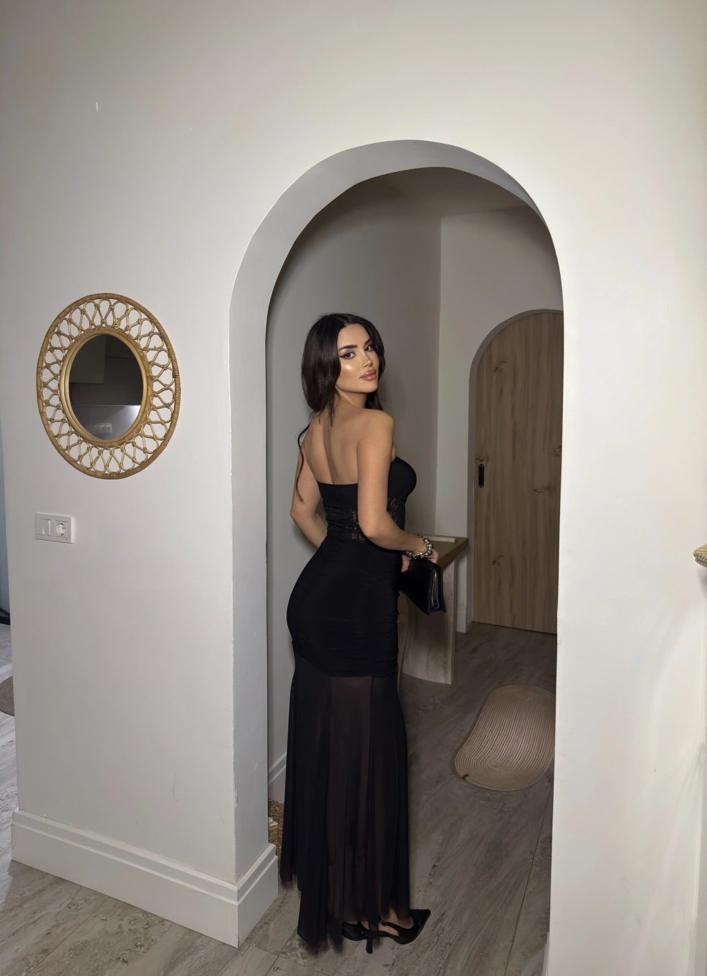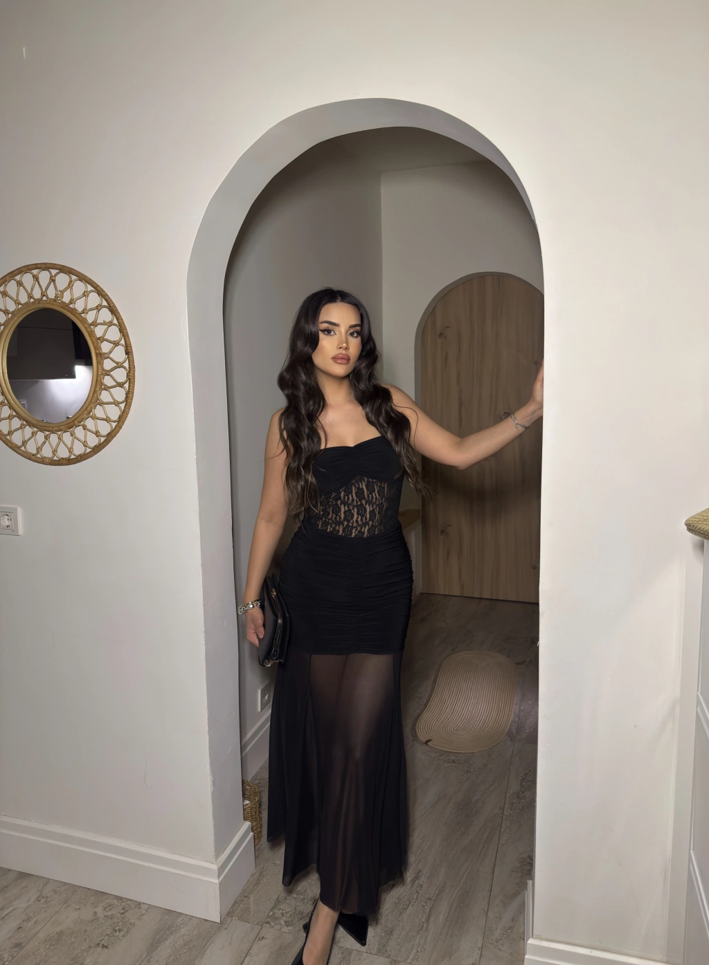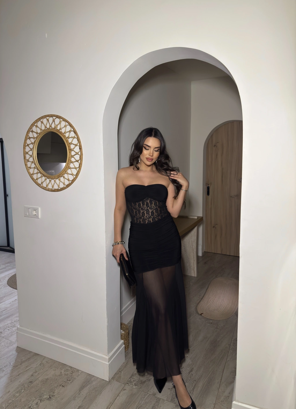 Siyah Straplez Dantel Detay Eteği Tül Uzun Elbise