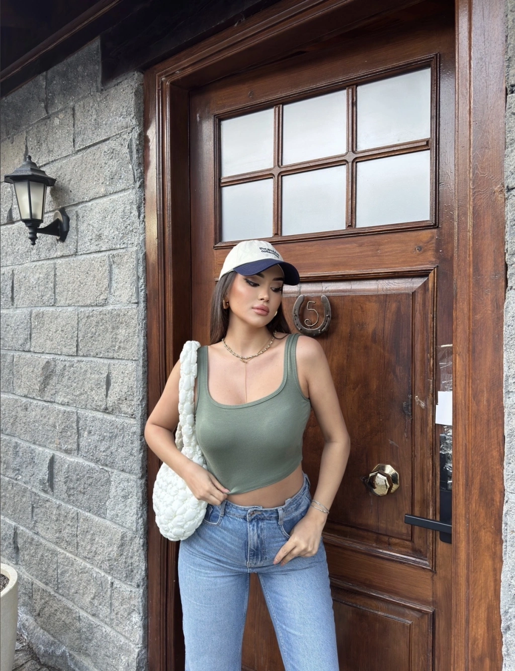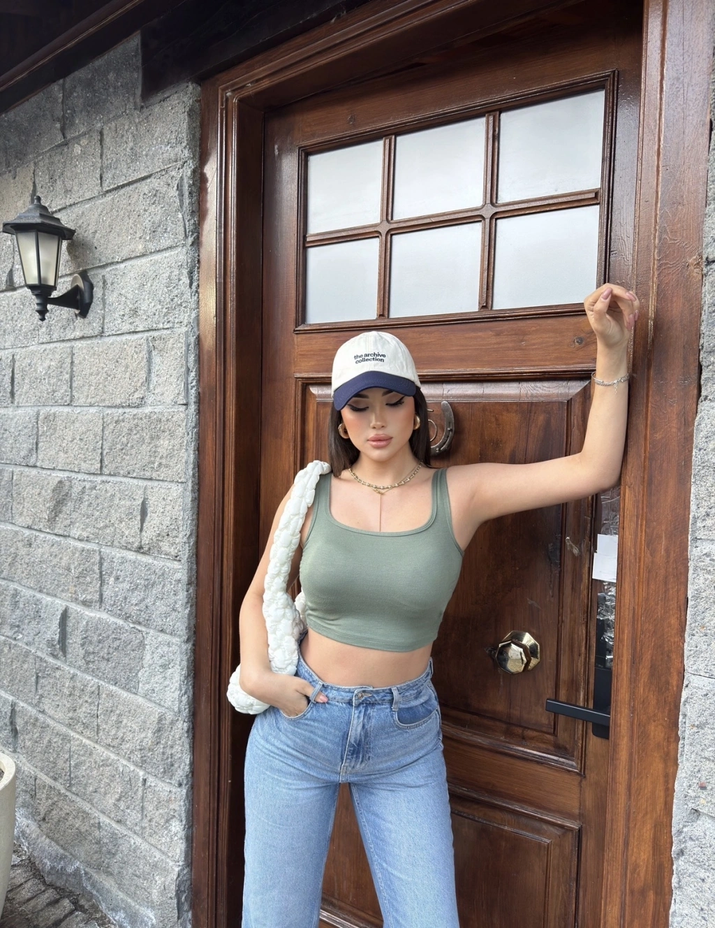 Haki Kalın Askılı Gloplu Basic Crop