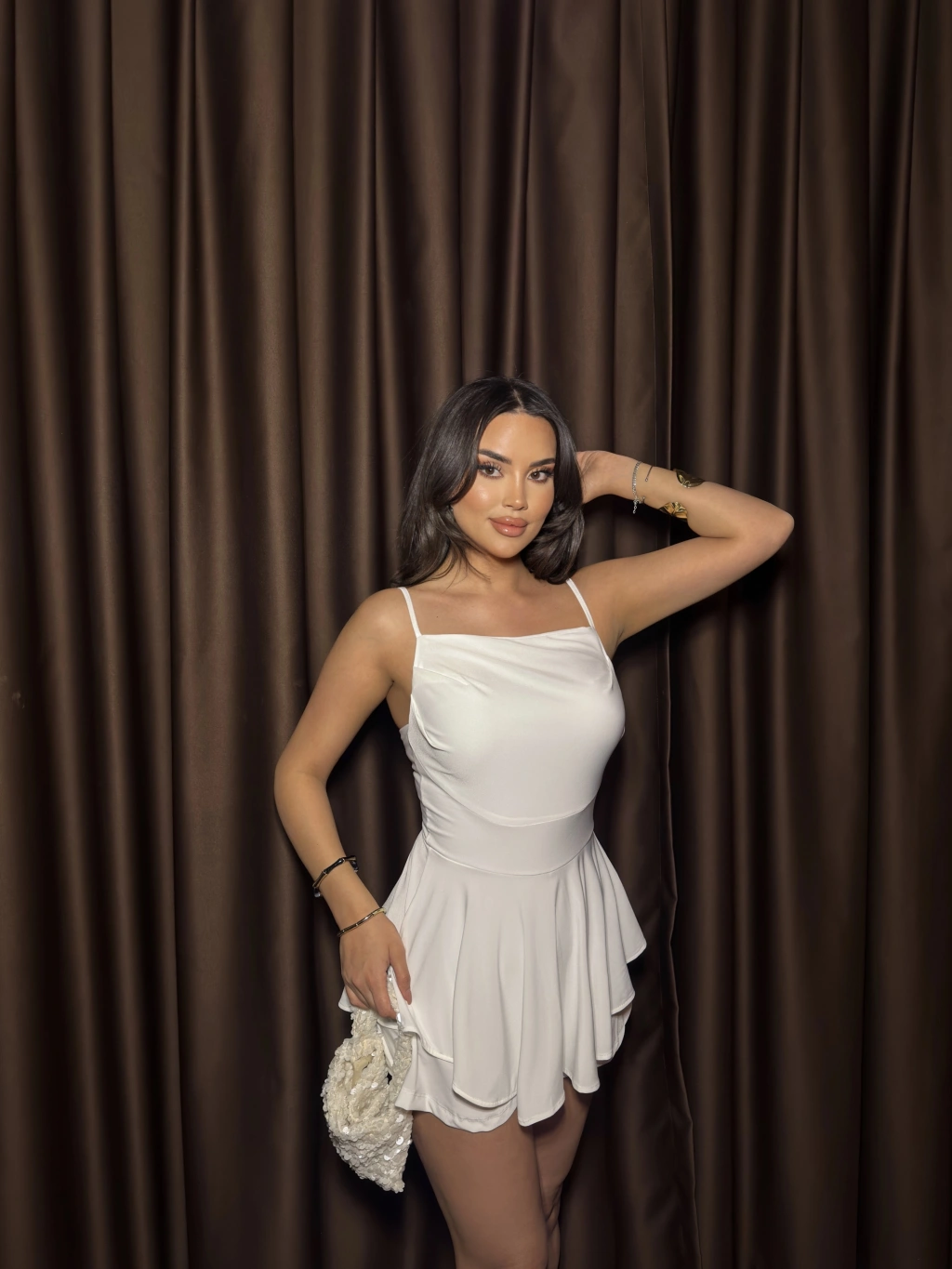 Beyaz Askılı Şortlu Tulum