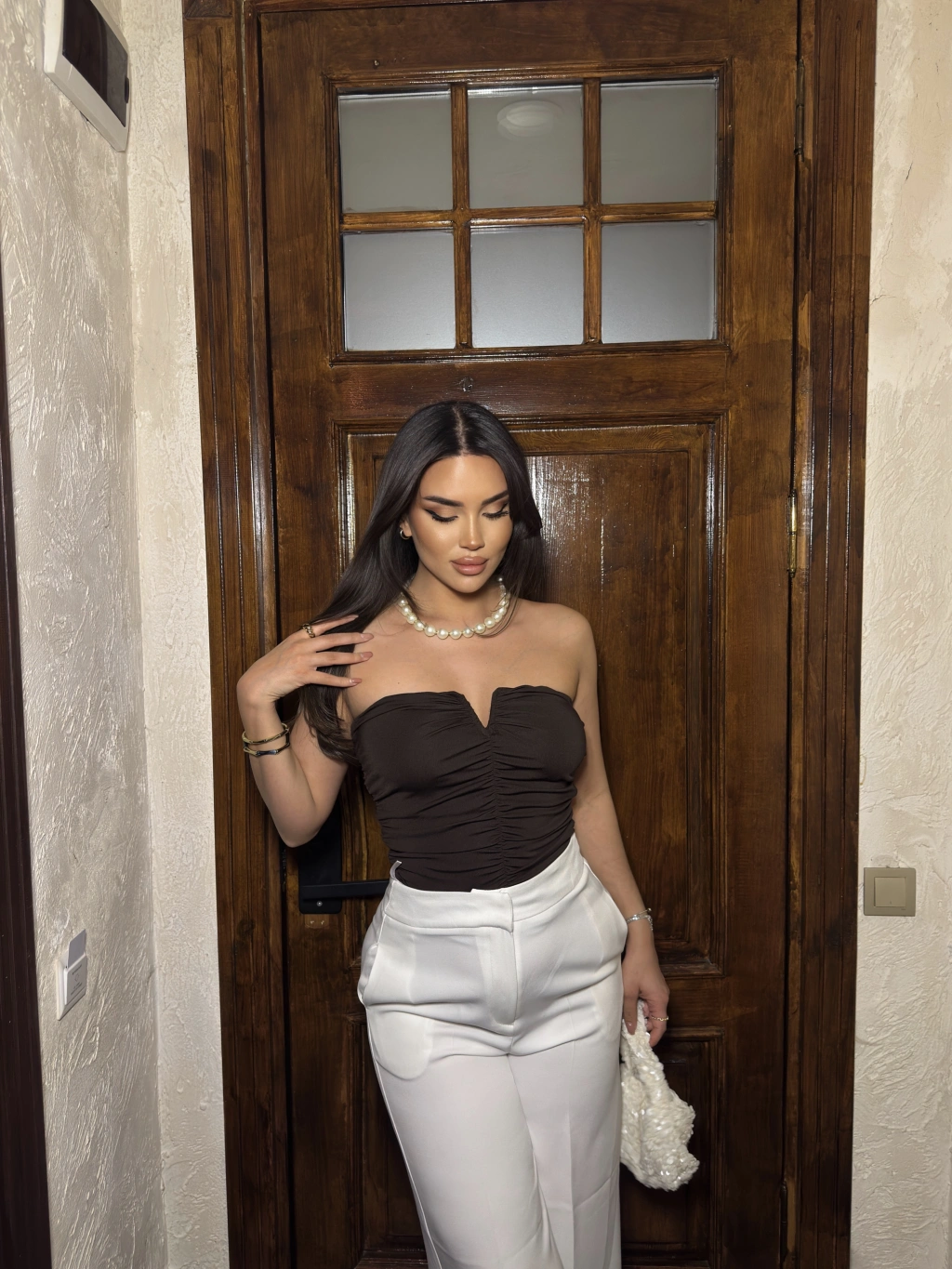 Acı Kahve Drapeli Straplez Crop