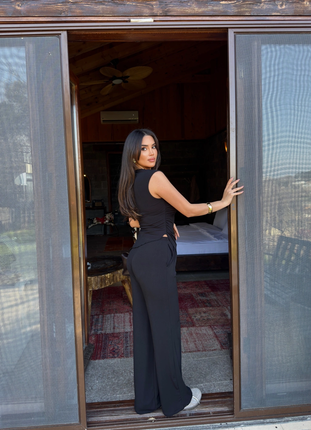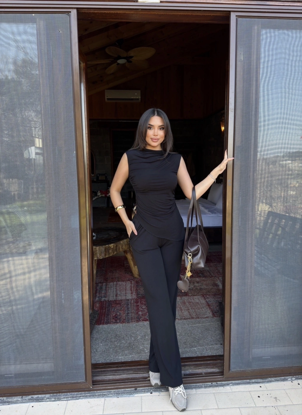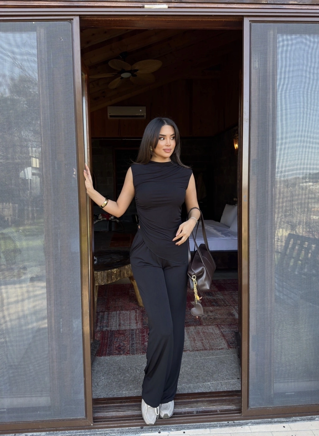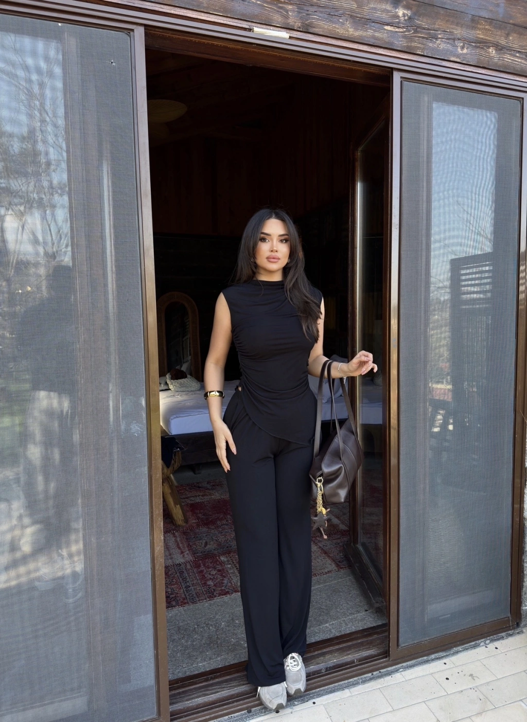 Siyah Bisiklet Yaka Kolsuz İkili Takım