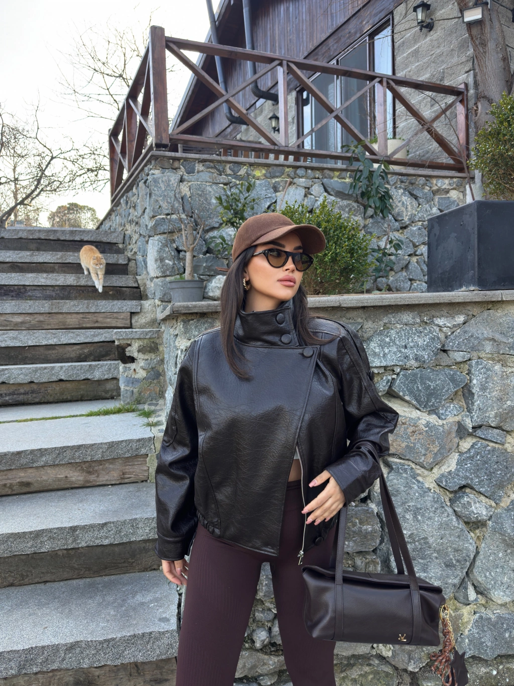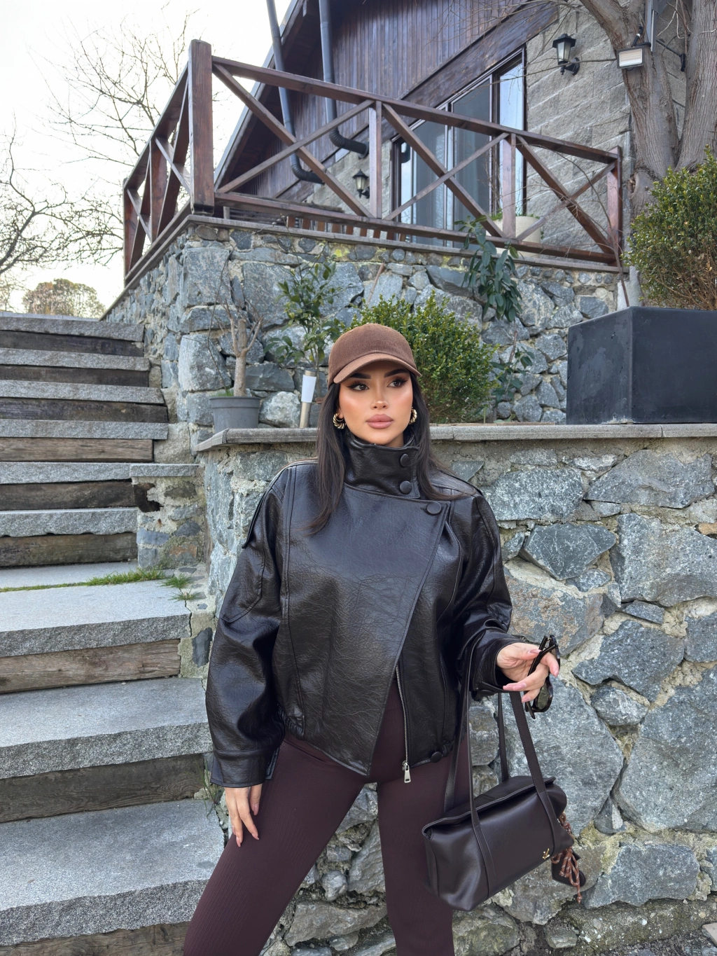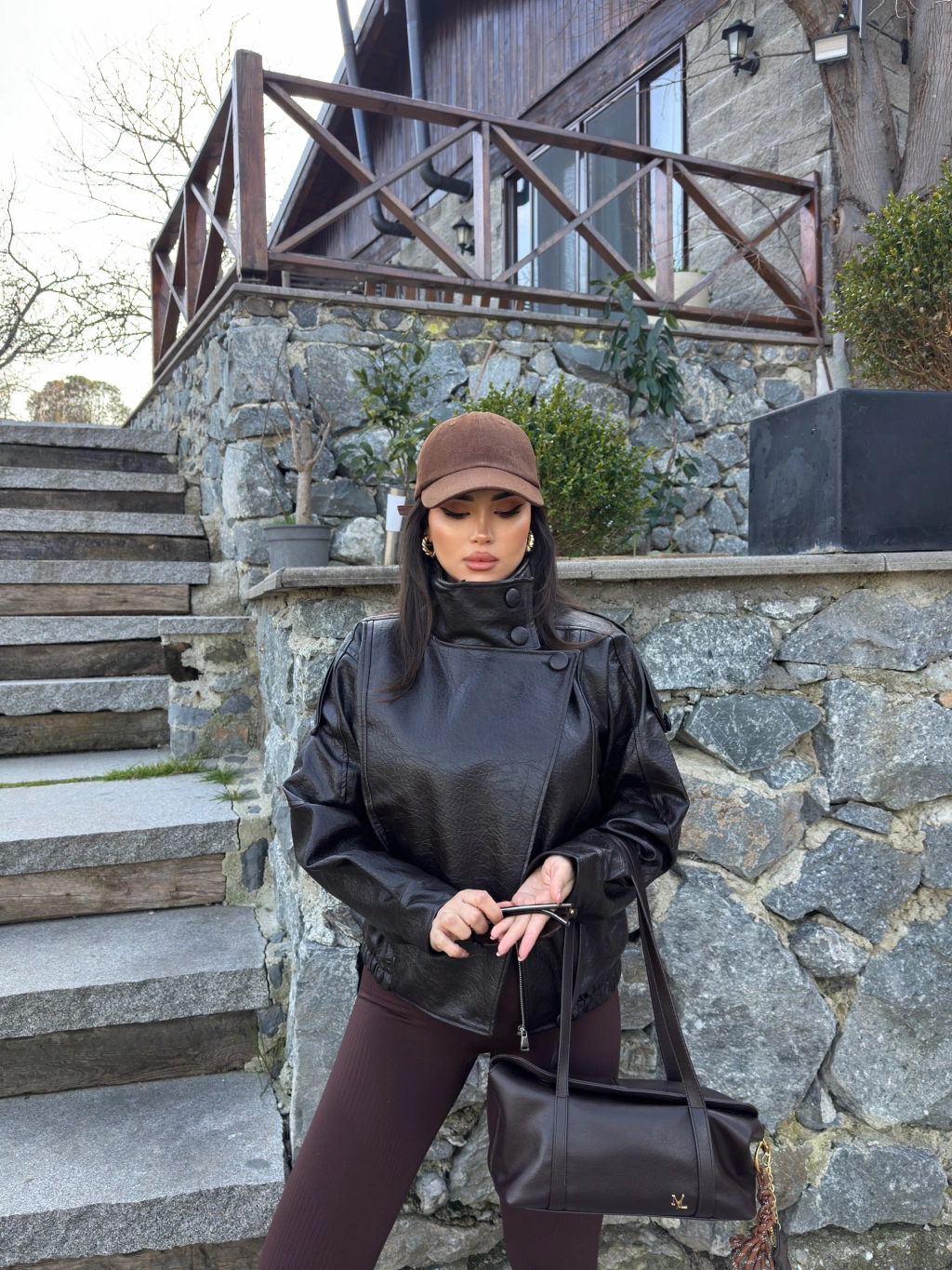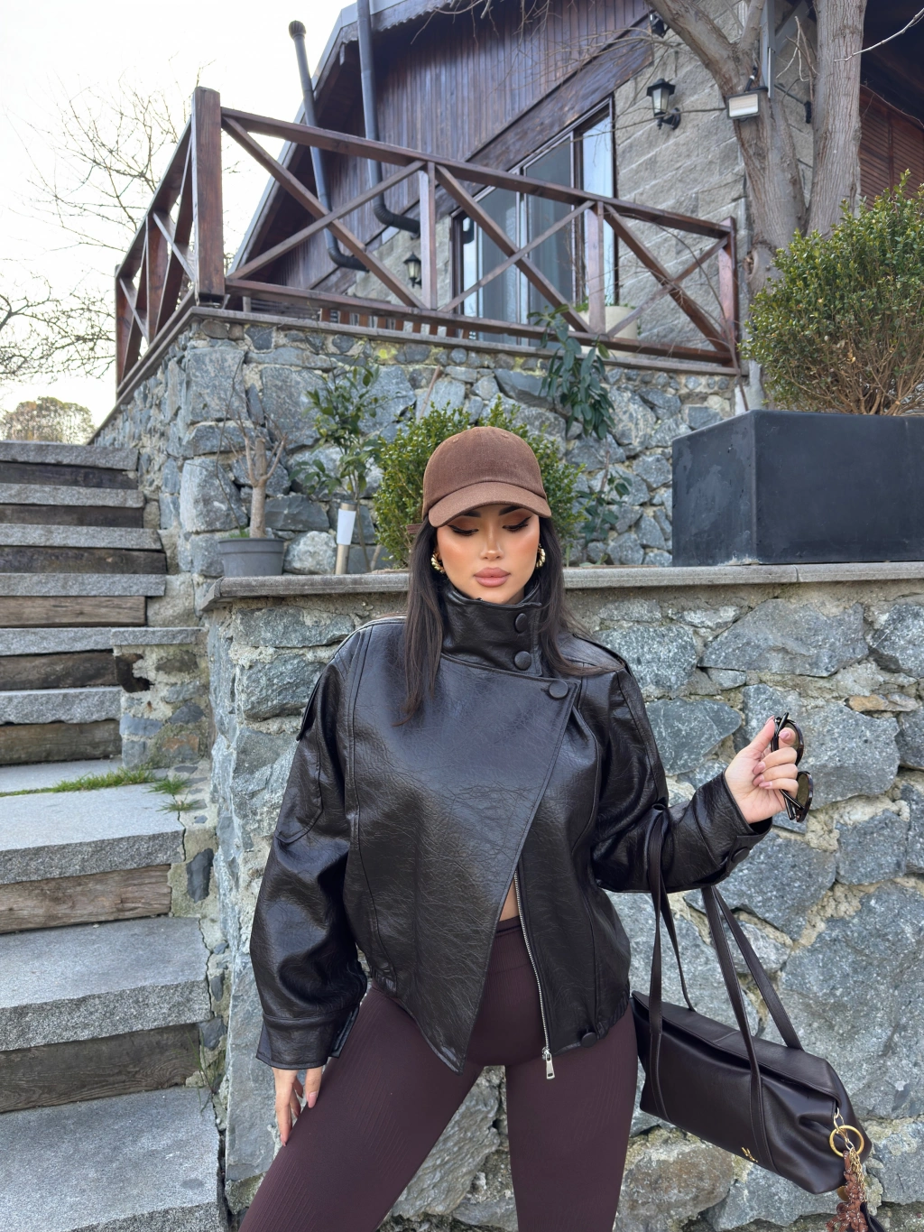Kahverengi Zra Suni Deri Dik Yaka Deri Ceket