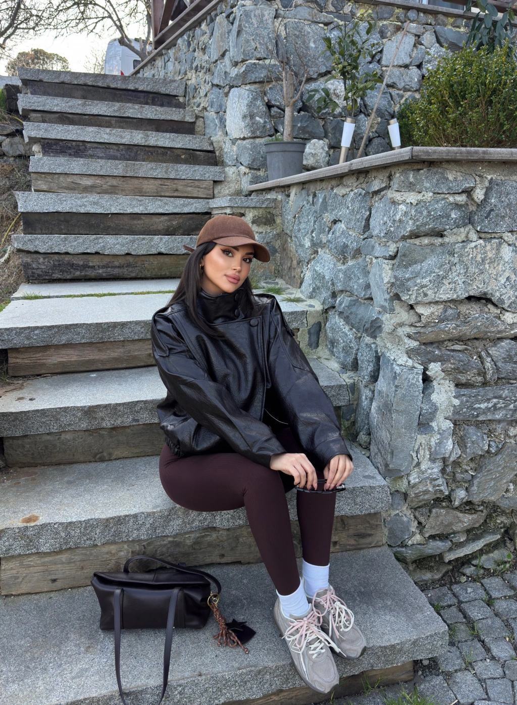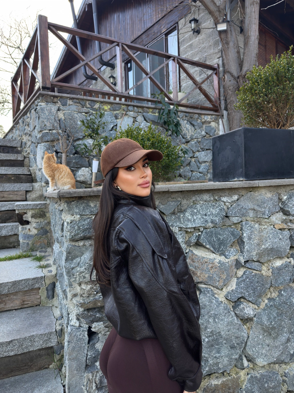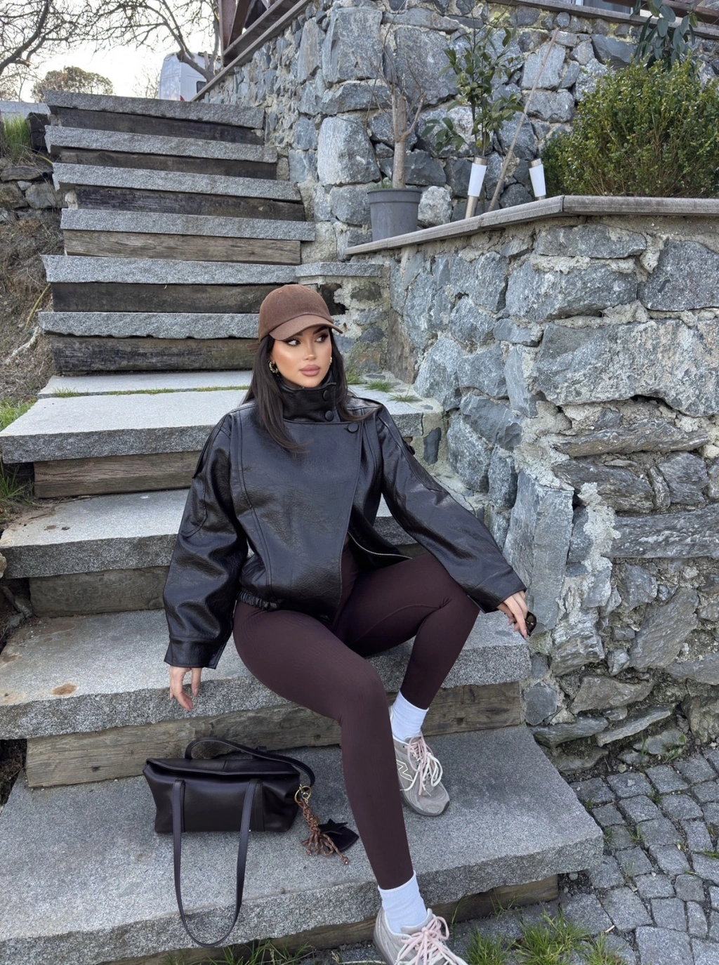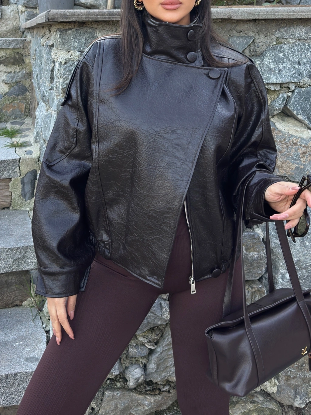 Kahverengi Zra Suni Deri Dik Yaka Deri Ceket