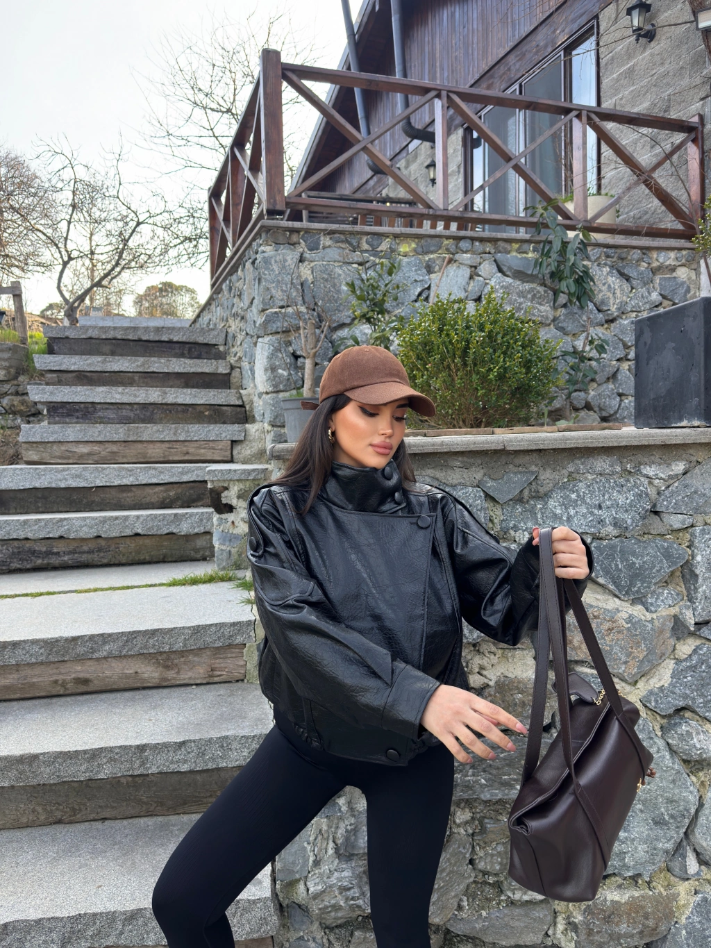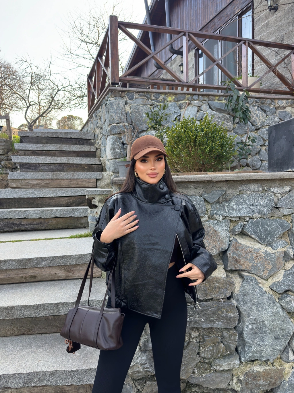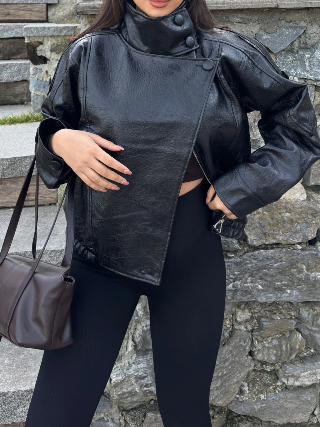 Siyah Zra Suni Deri Dik Yaka Deri Ceket