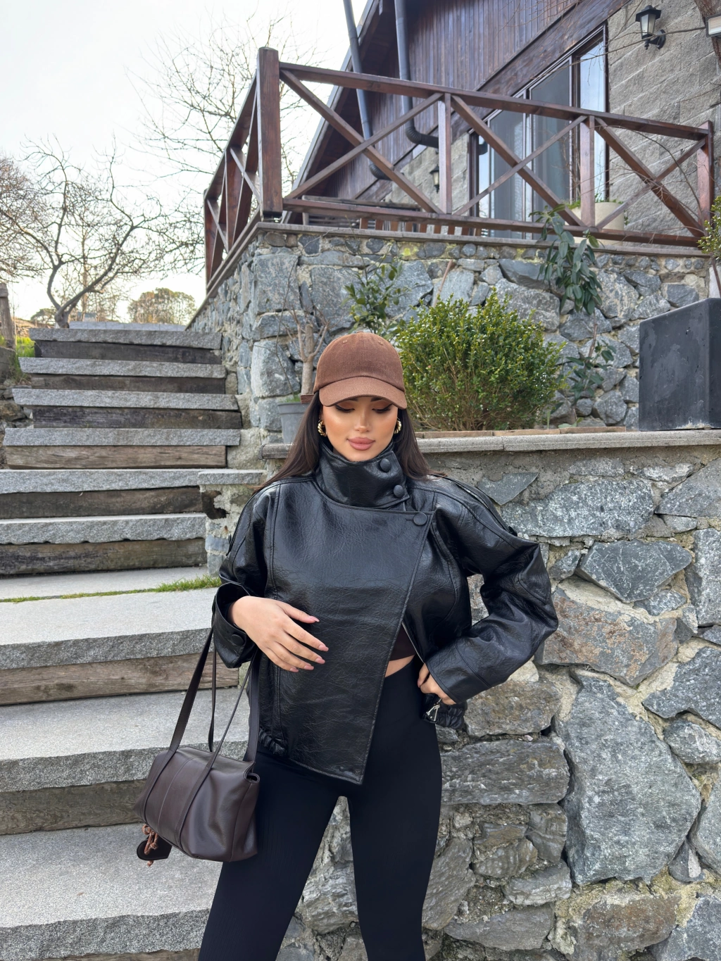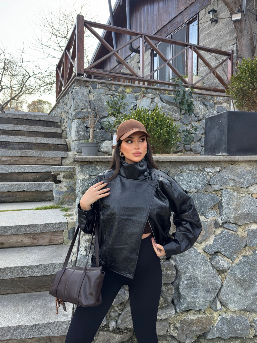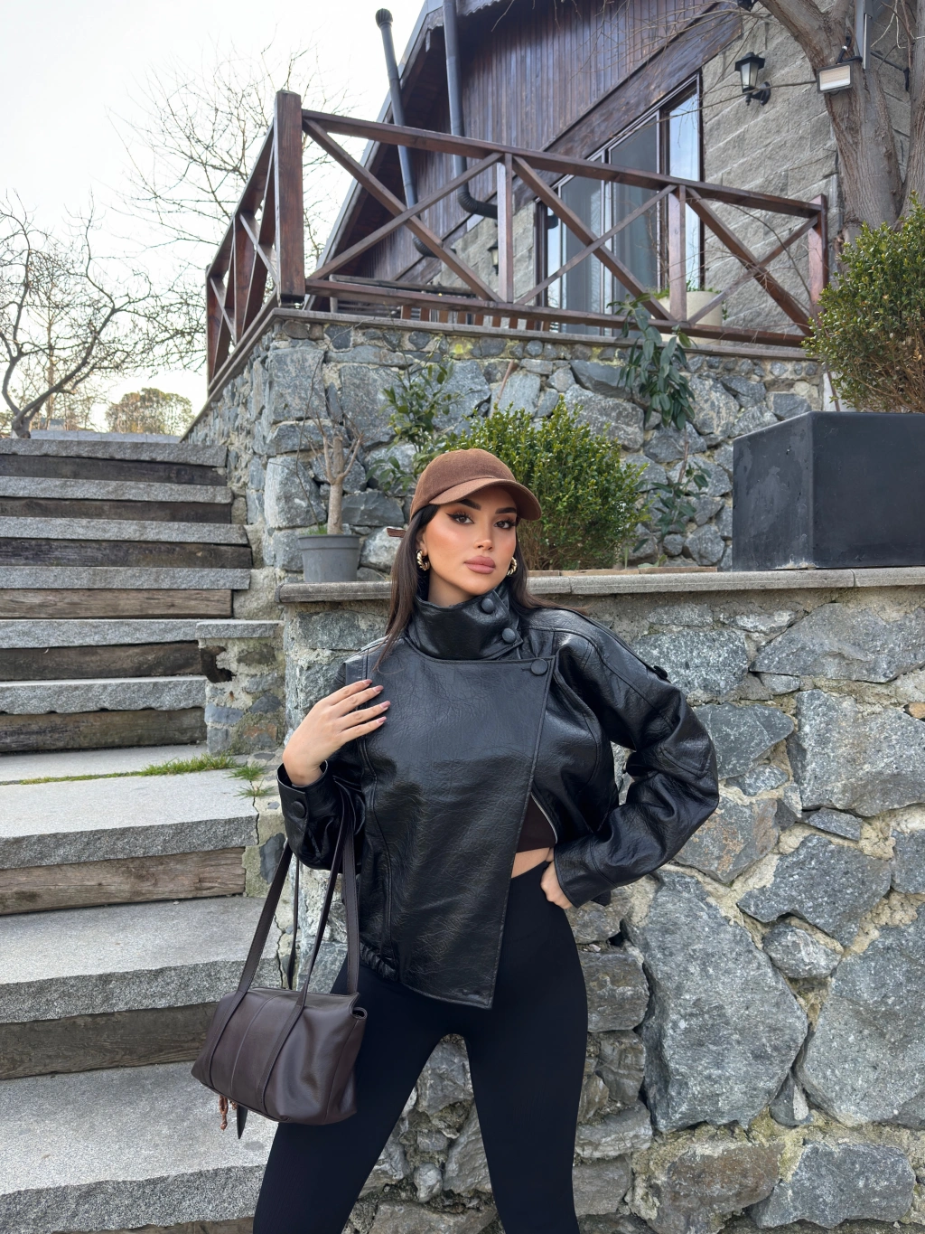 Siyah Zra Suni Deri Dik Yaka Deri Ceket