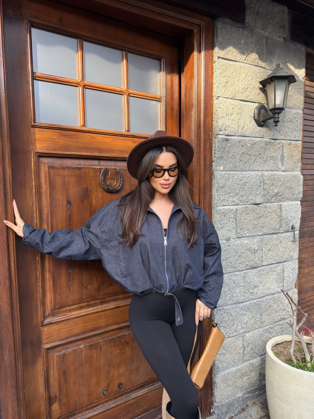Koyu Mavi Kemer Detay Oversize Kot Ceket