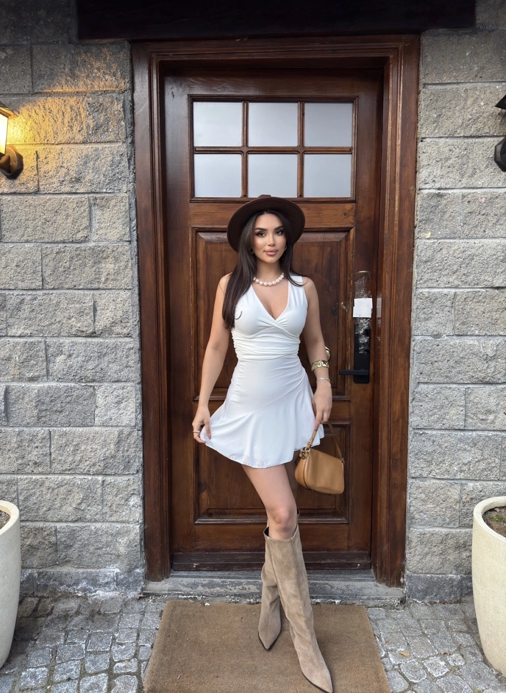 Beyaz Kruvaze Yaka Şortlu Elbise