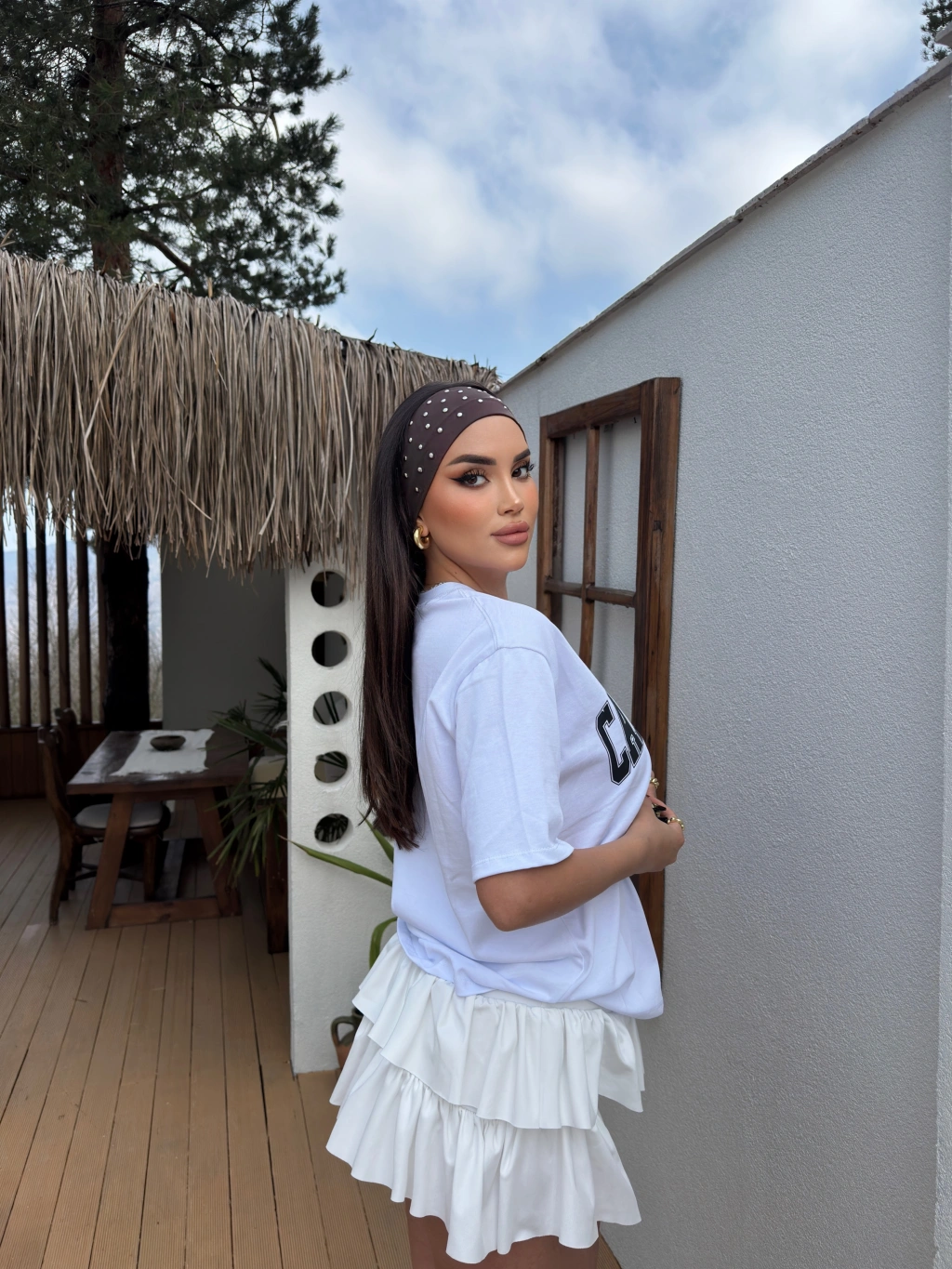 Beyaz California Baskılı Oversize Tshırt