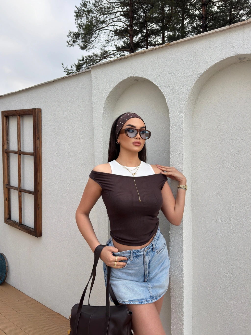 Kahverengi Kaşkorse İkli Bluz Takım