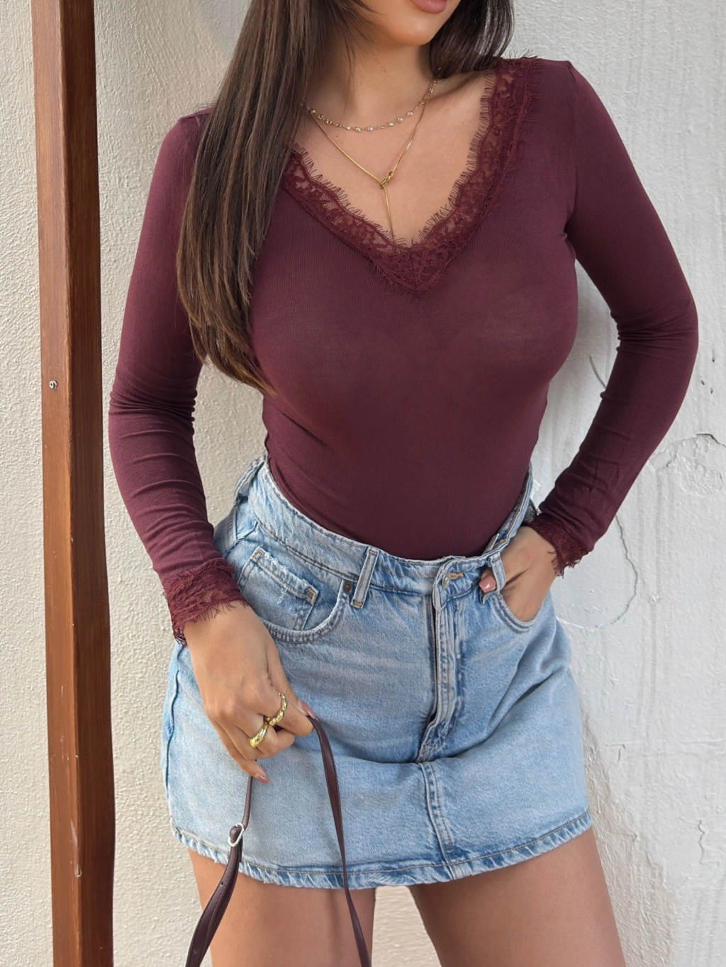 Mürdüm V Yaka Dantel Detay Bluz