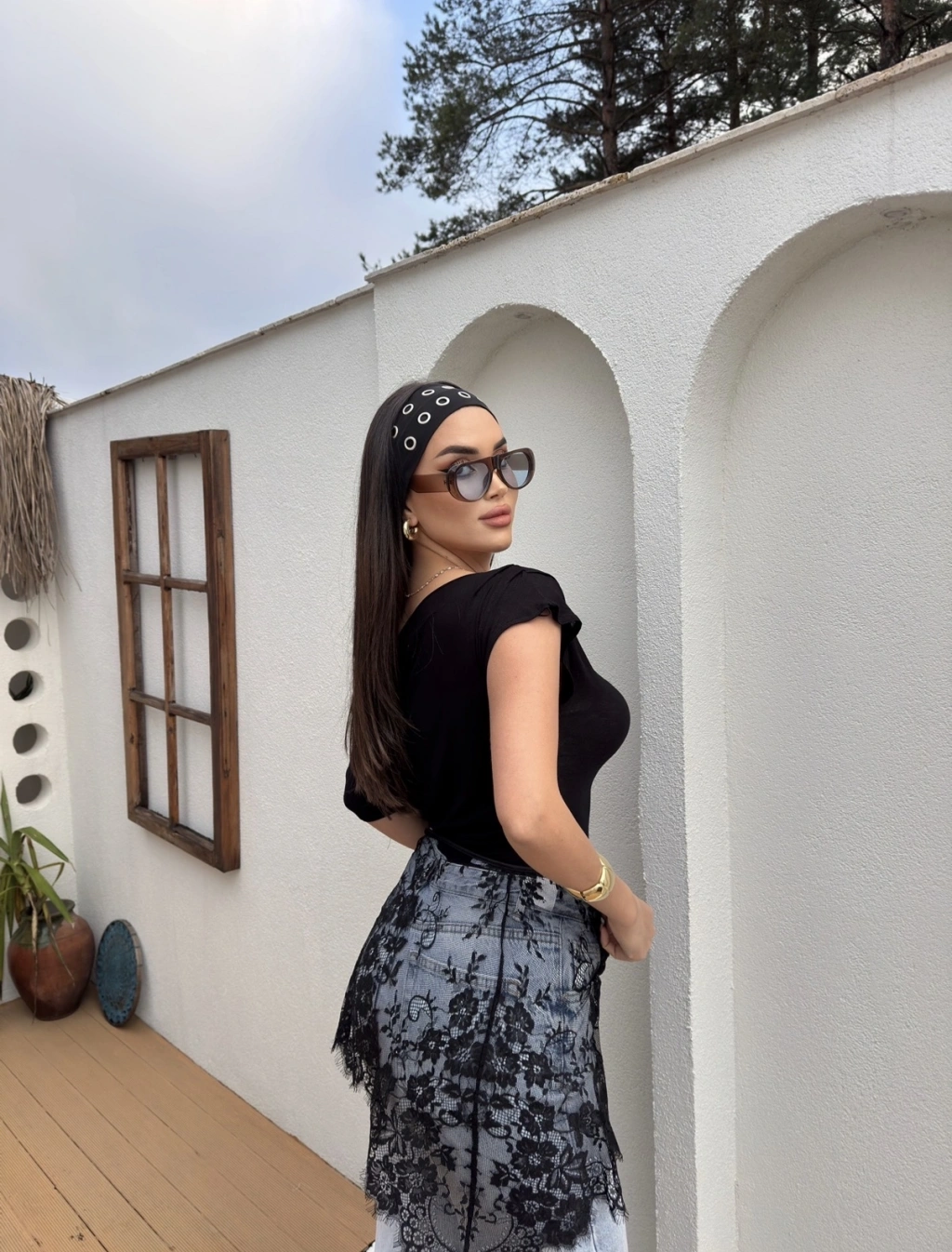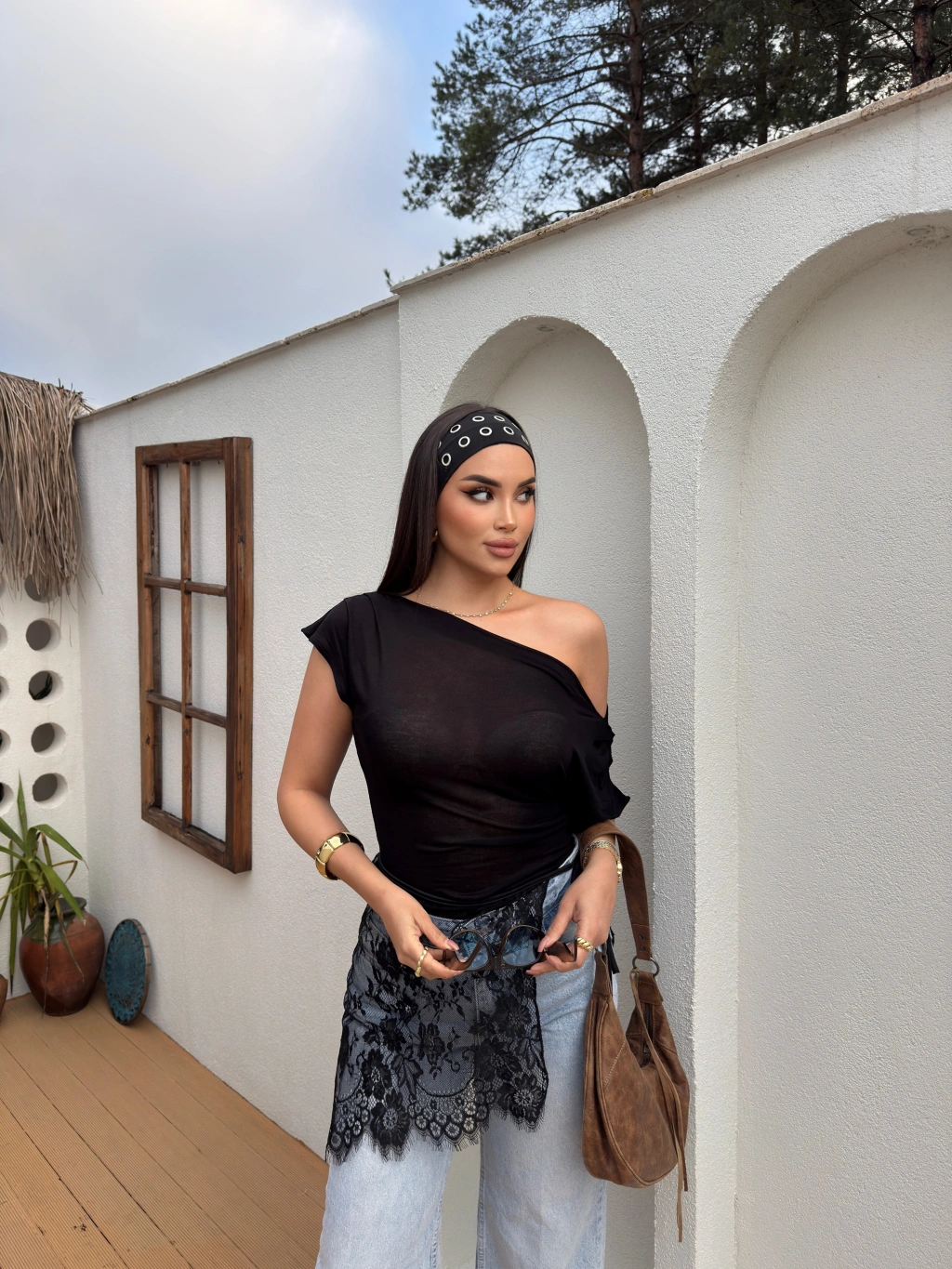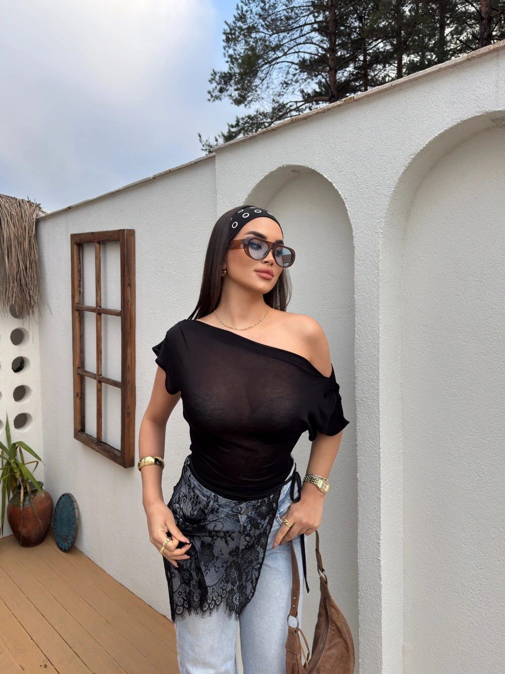 Siyah Kayık Yaka Transparan Bluz