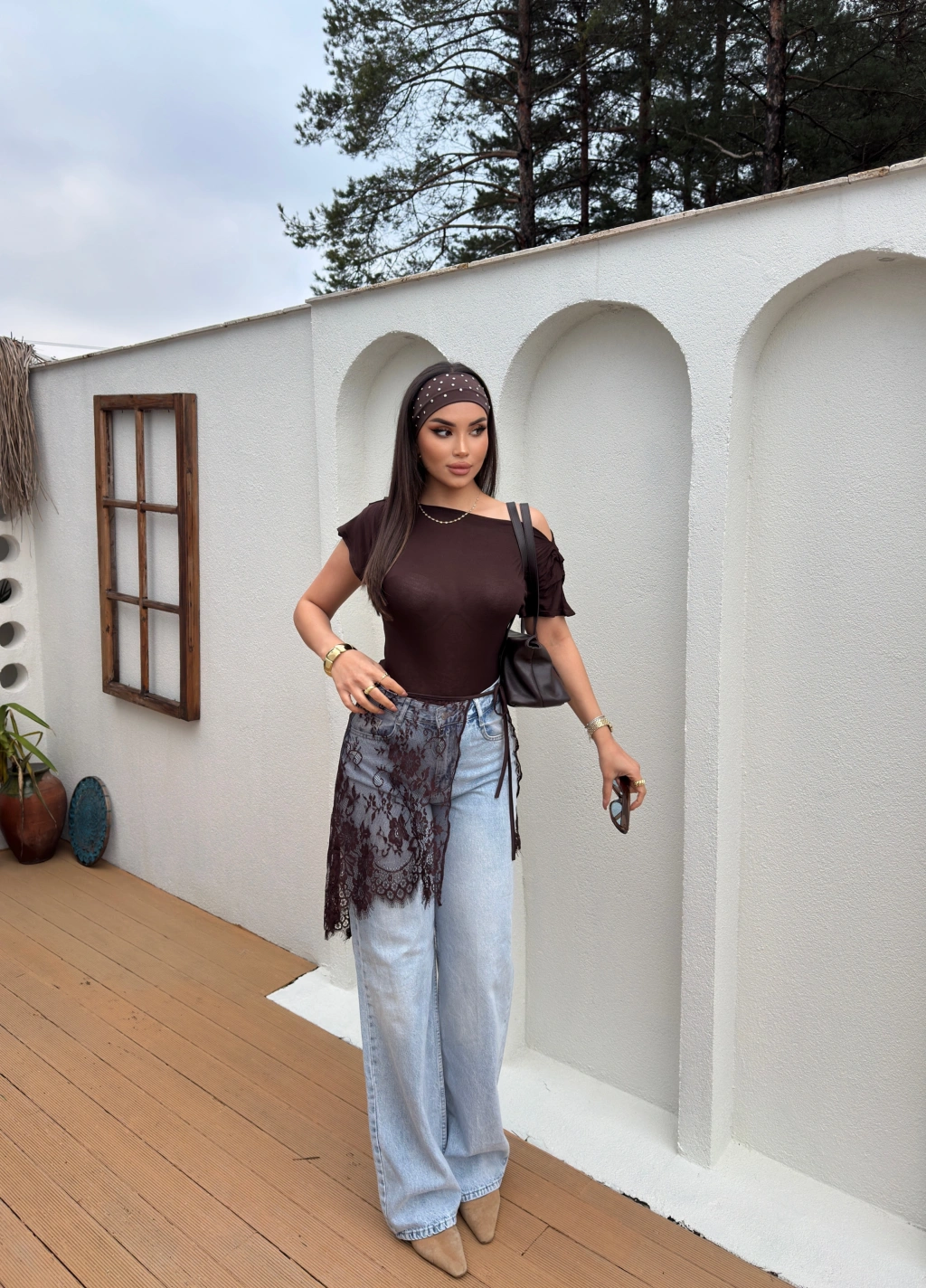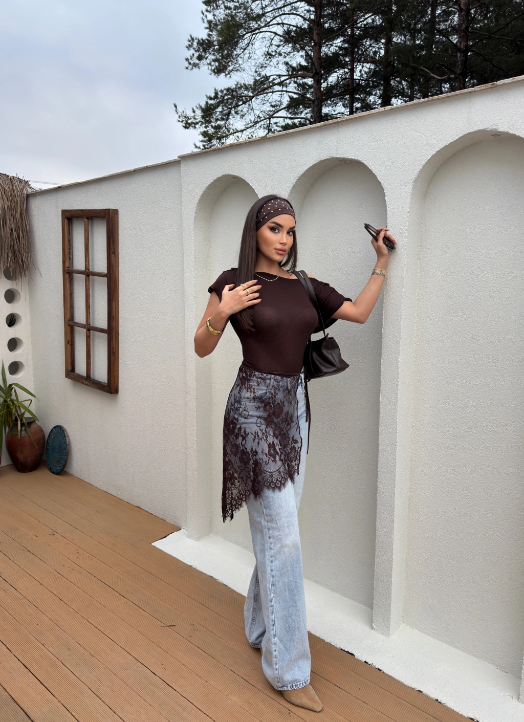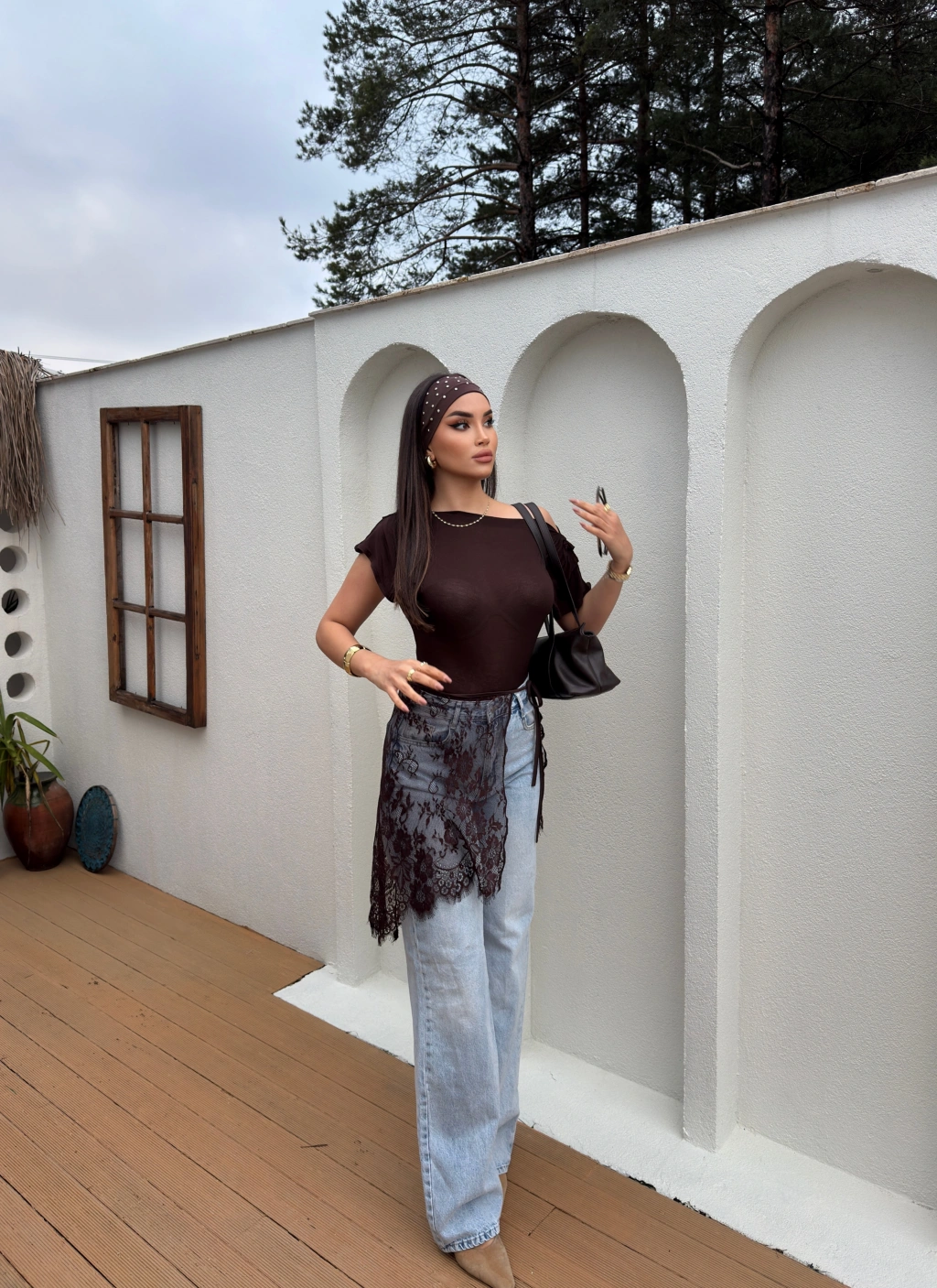 Kahverengi Dantelli Pareo