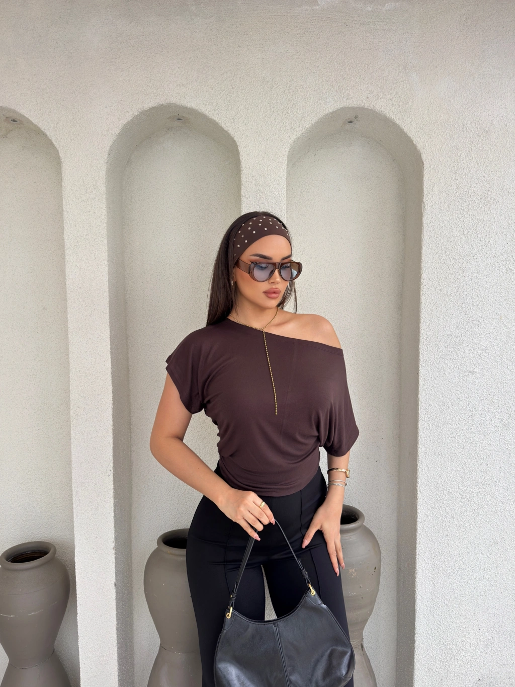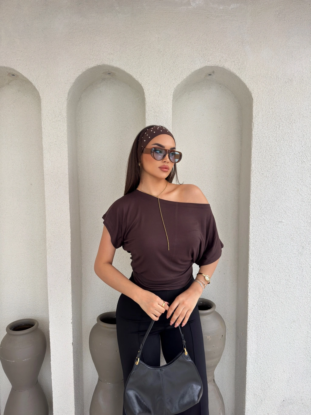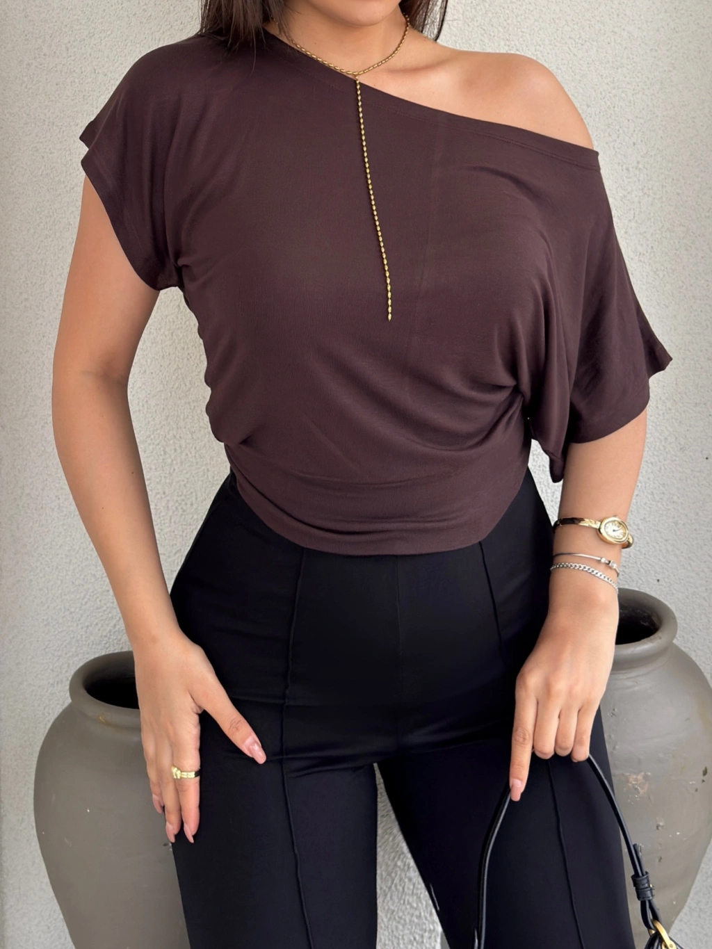 Kahverengi Kayık Yaka Modal Basic Tshırt